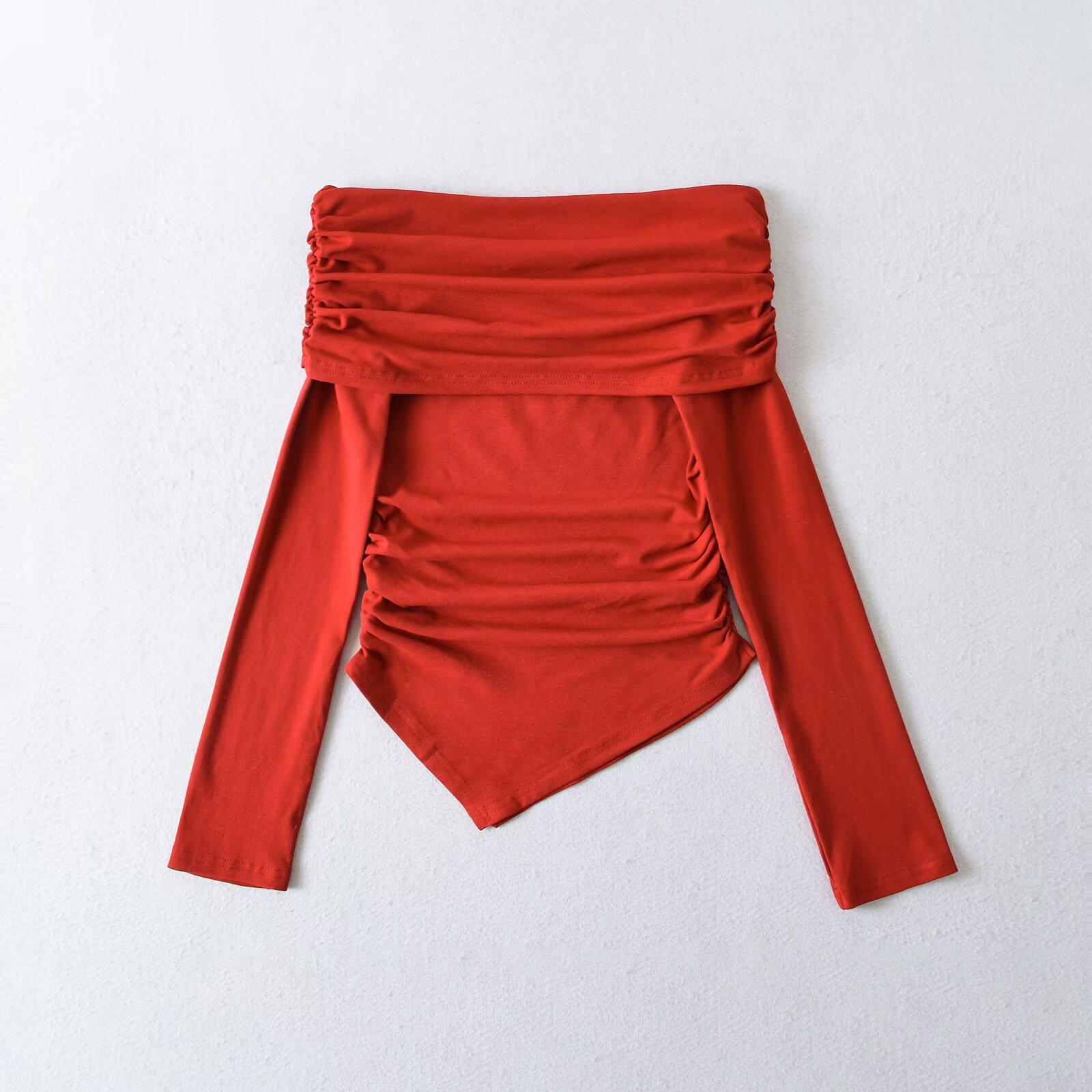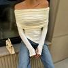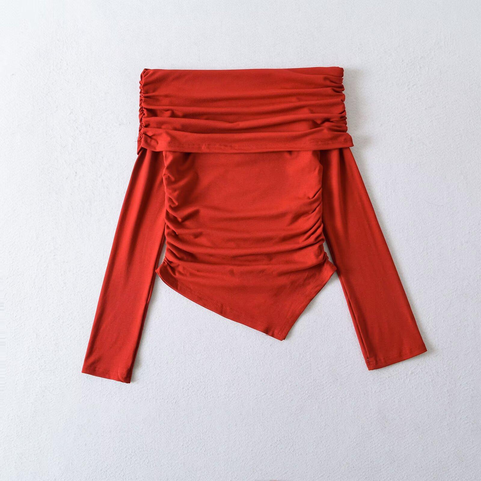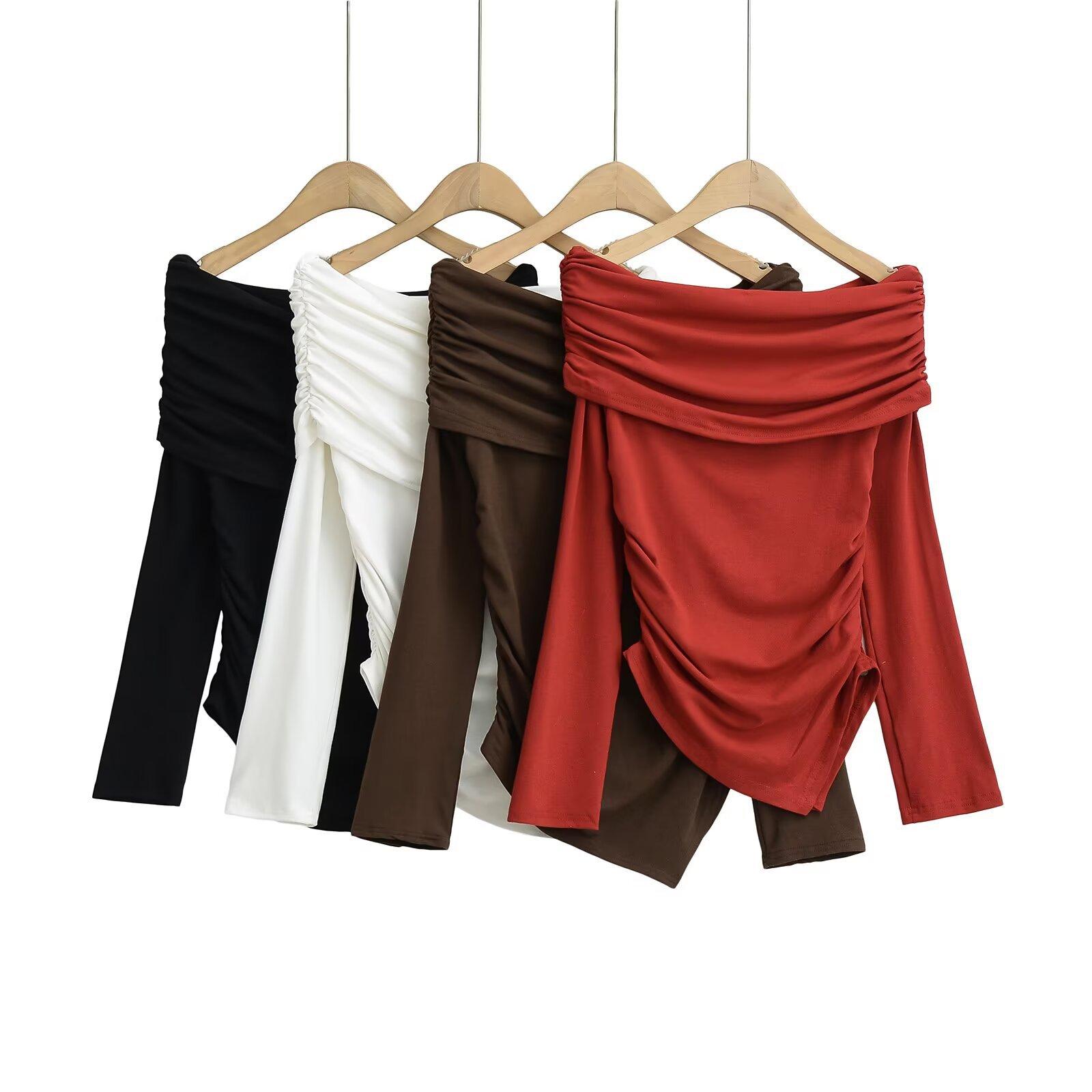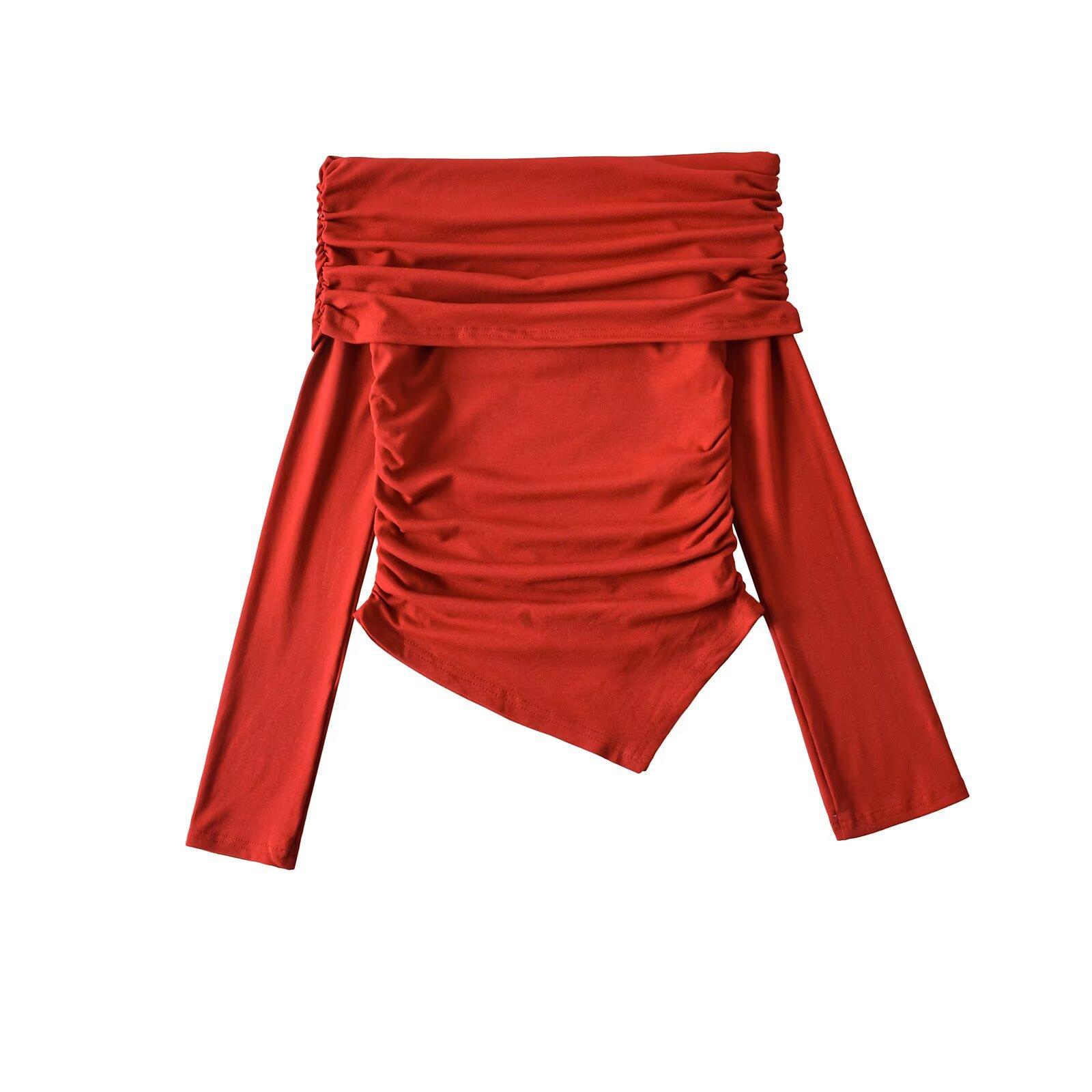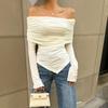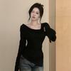 American Style Retro Hot Girl Design Sense ombro a ombro manga comprida camiseta feminina irregular ombro a ombro chique sexy apertado top