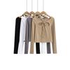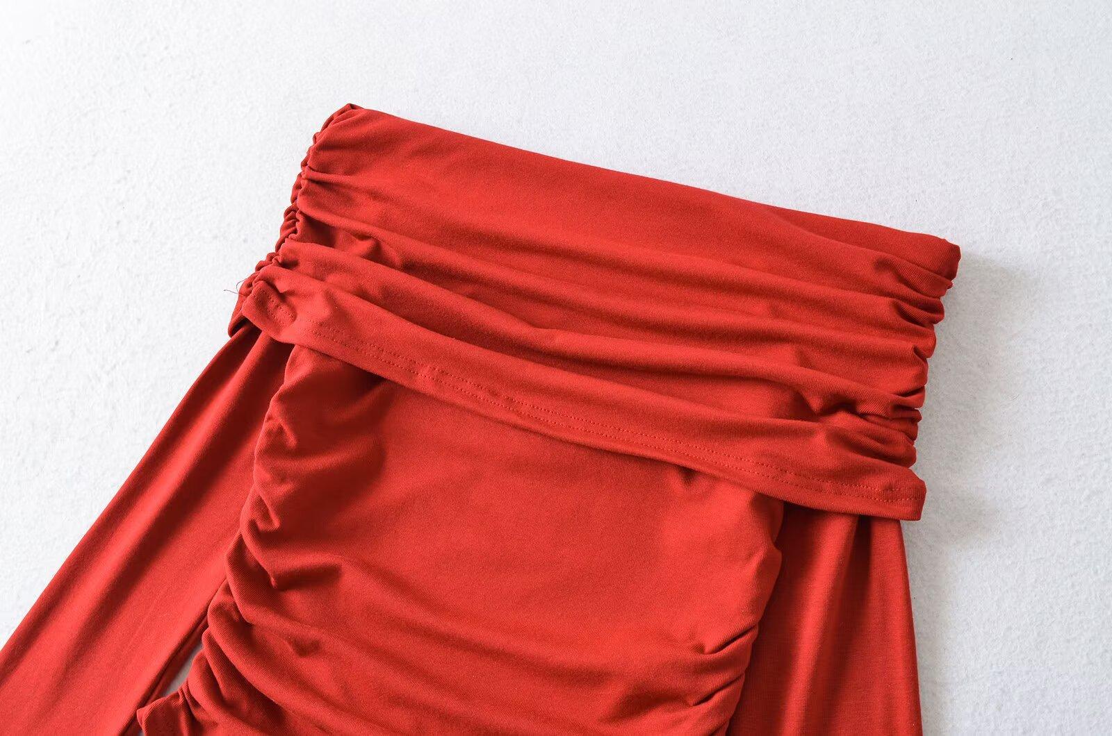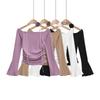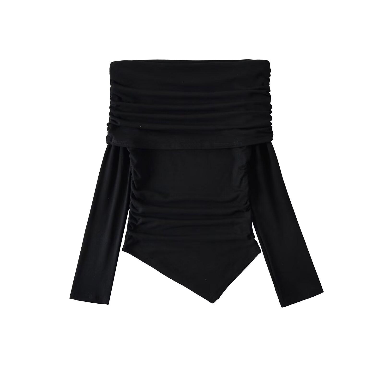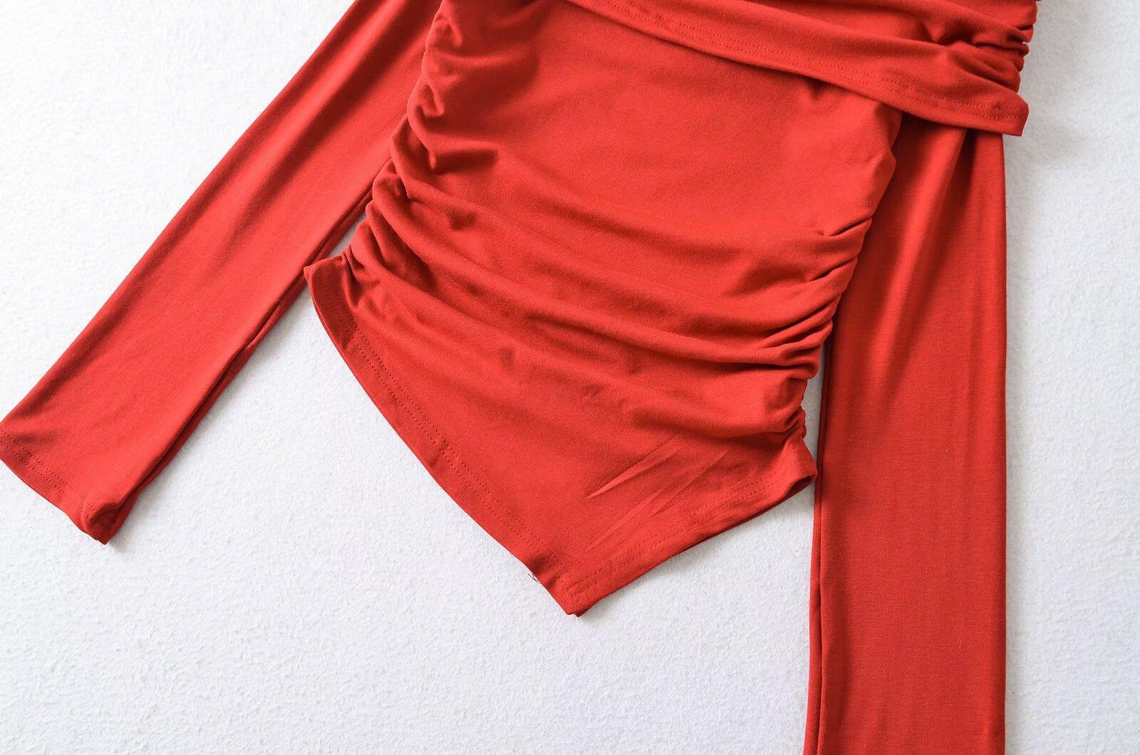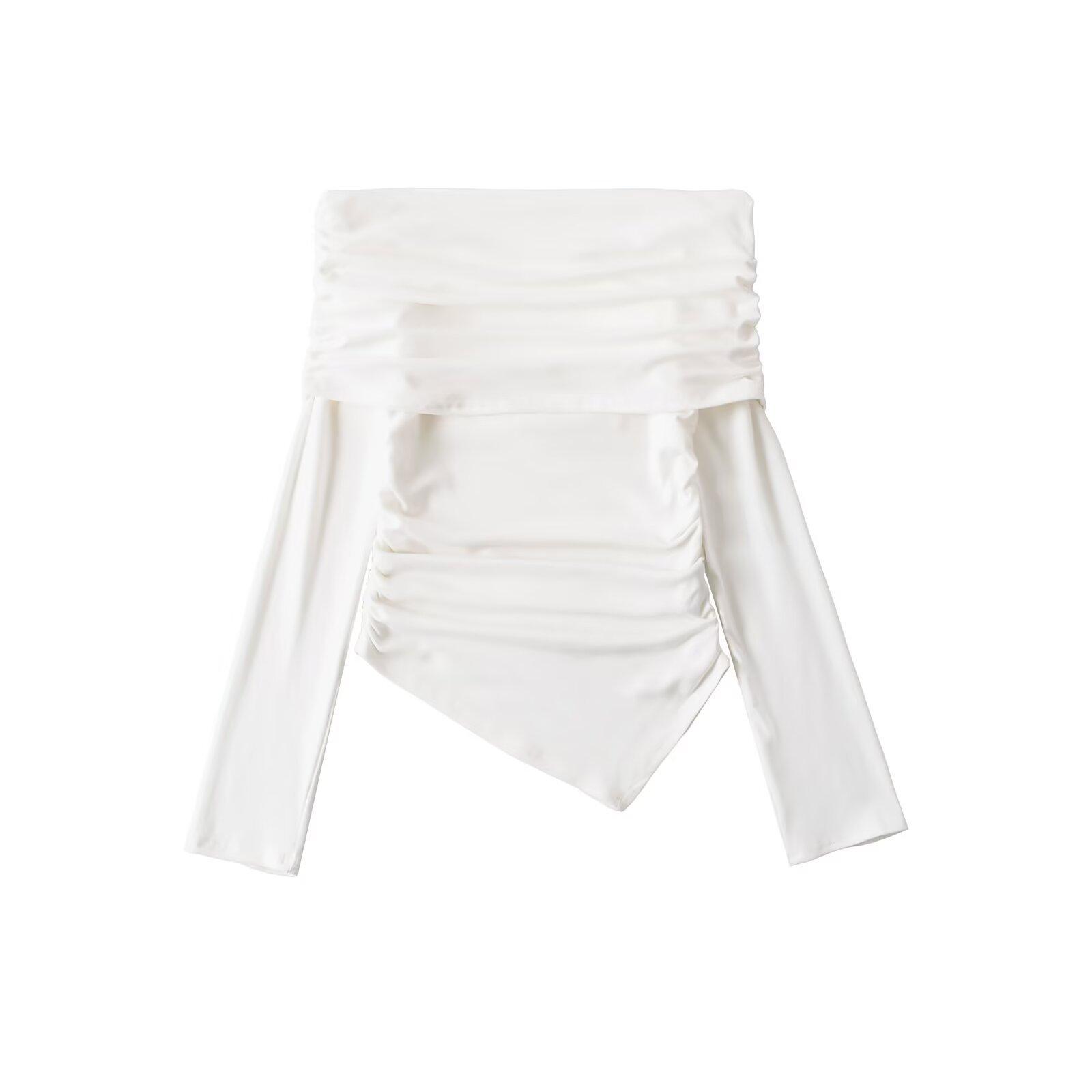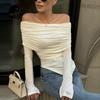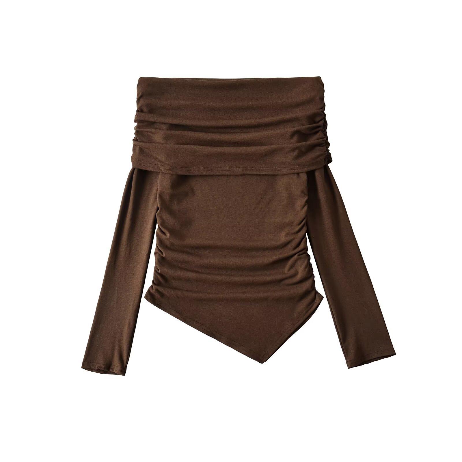 American Style Retro Hot Girl Design Sense ombro a ombro manga comprida camiseta feminina irregular ombro a ombro chique sexy apertado top