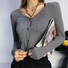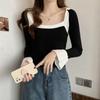 Início do outono novo preto malha pescoço quadrado nicho design senso estilo hong kong manga longa camiseta meninas quentes sexy puro desejo topo ins