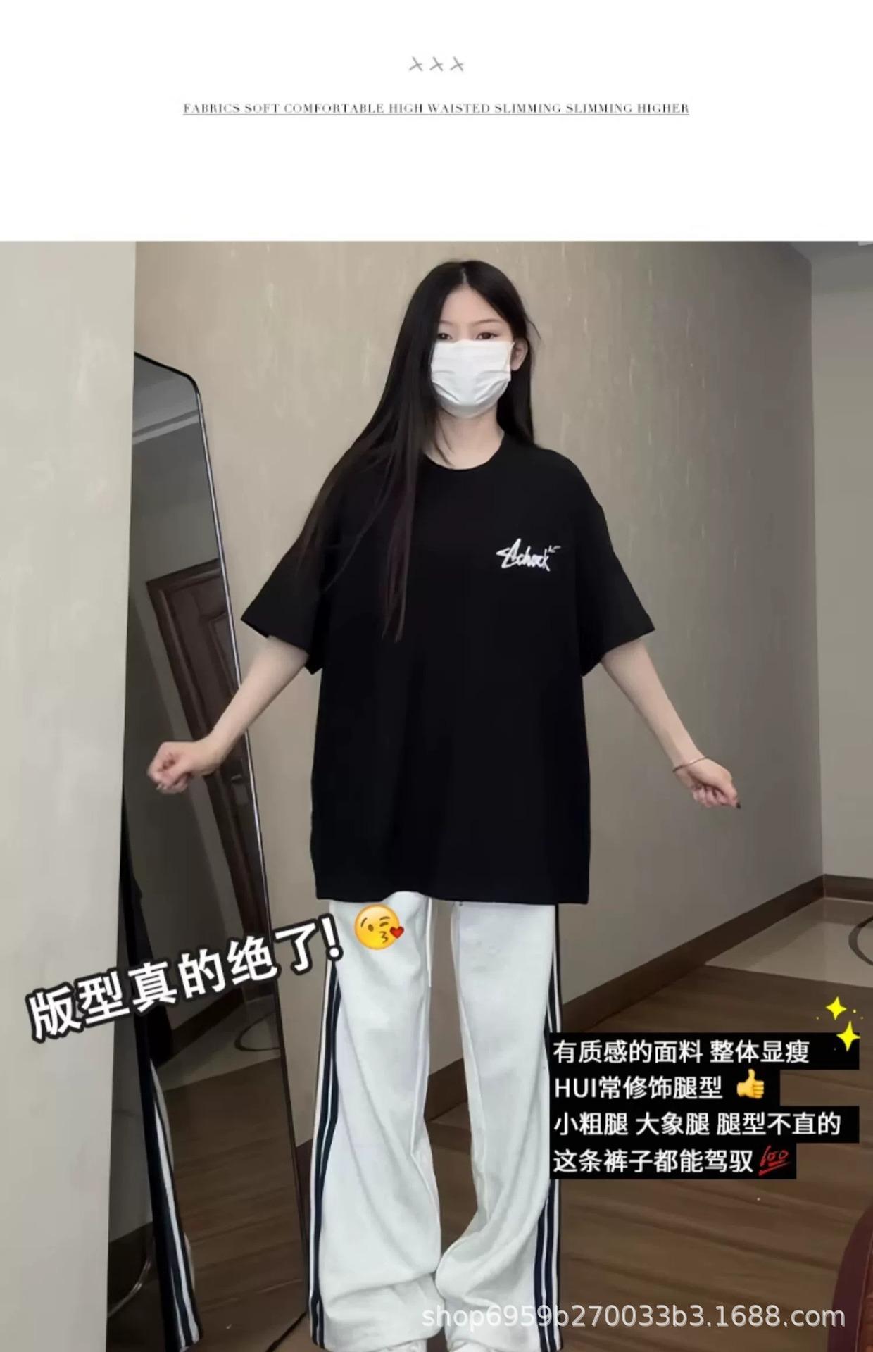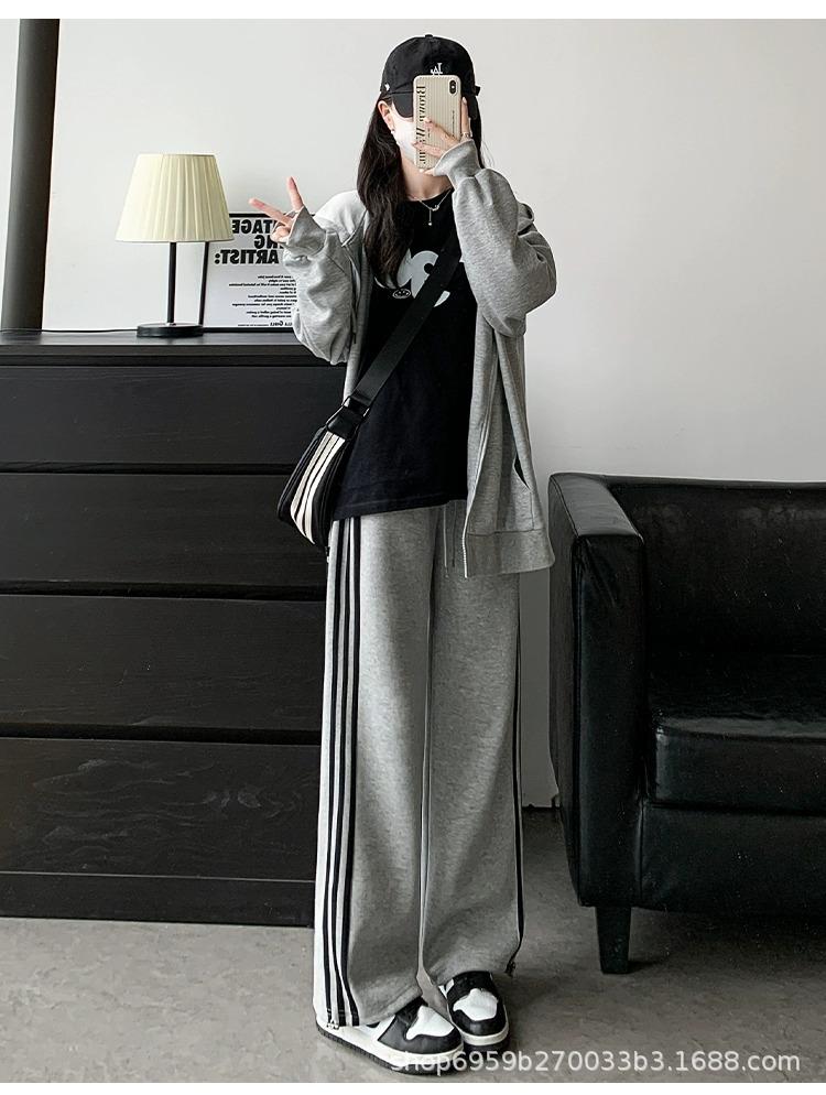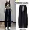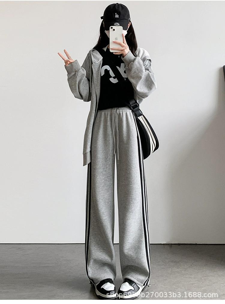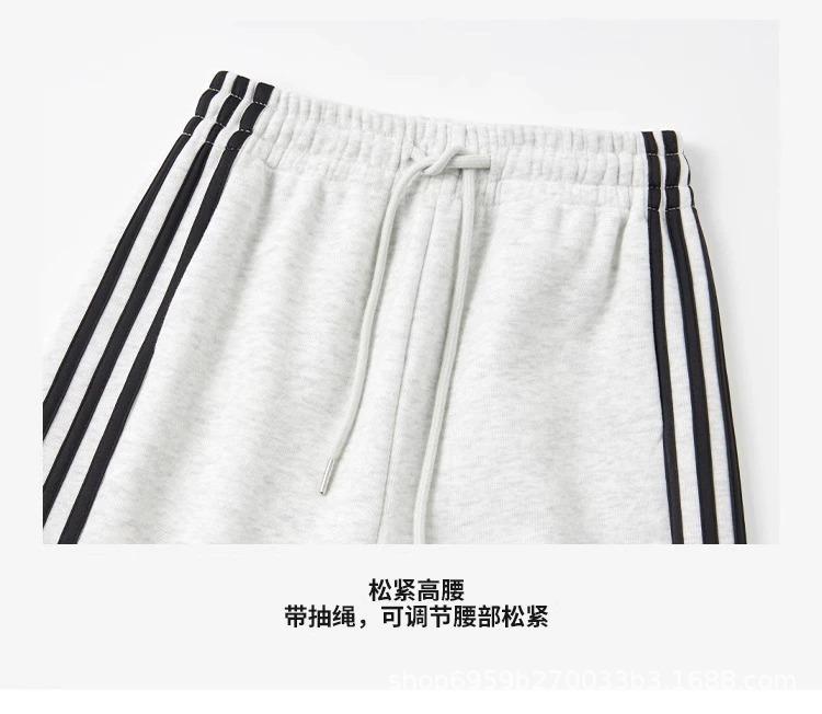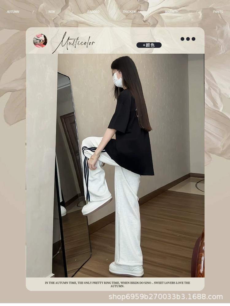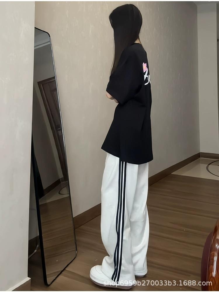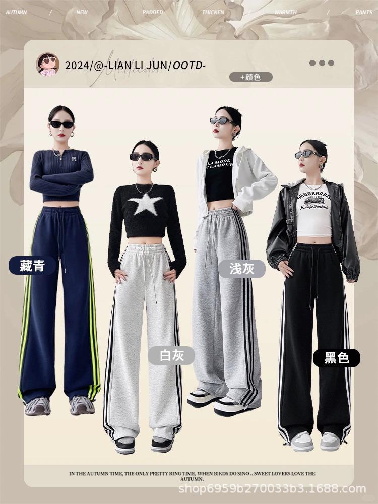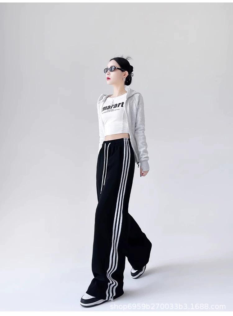 Calça de Moletom Feminina Estilo Americano Três Listras Primavera/Verão 2025 Nova Cintura Alta Emagrecedora Perna Larga Reta Casual Joggers Versão Estreita Tendência