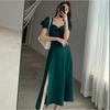 Vestido Feminino Vestido Longo 2025 Verão Novo Manga Bufante Gola Quadrada Estilo Hepburn Francês Doce Retro Vestido Dividido A-line