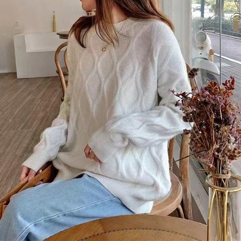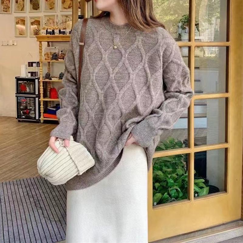 Estilo Preguiçoso Outono e Inverno Coreano Nova Moda Gola Redonda Pulôver Tricot Top Torcido Pulôver Feminino Roupa Exterior Tendência
