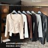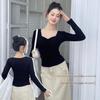 2024 Estilo Ocidental Casual Decote Em V Slim-Fit Slimming Manga Comprida Dividir T-Shirt Outono Design Sense Spice Girls Sexy Top Ins