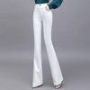 Calça Jeans Branca Elástica Flare para Mulheres 2025 Novo Design de Bolso Cintura Alta Ajuste Slim Calça Sino