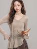 Outono 2024 Novo Design Estilo Coreano Senso Babados Camiseta Nicho Elegante Alça Irregular Top Cintura Justa Ins