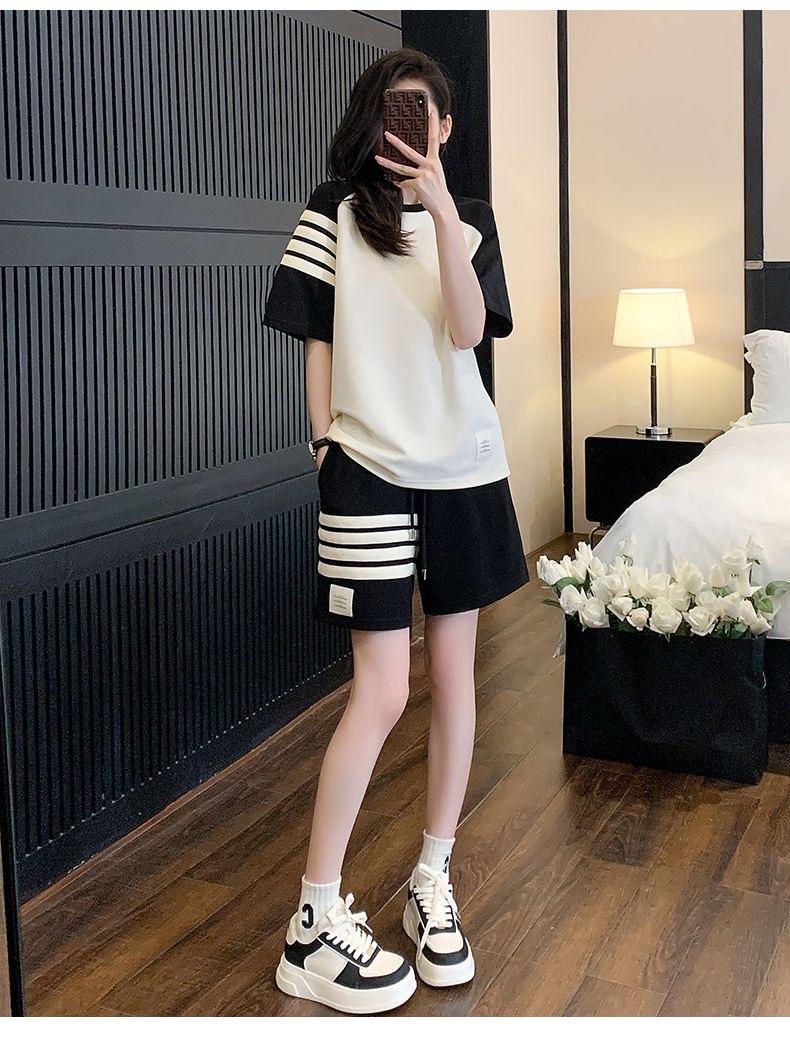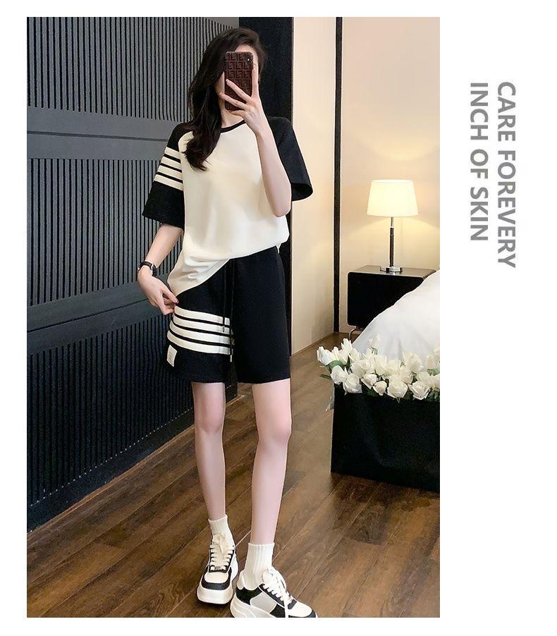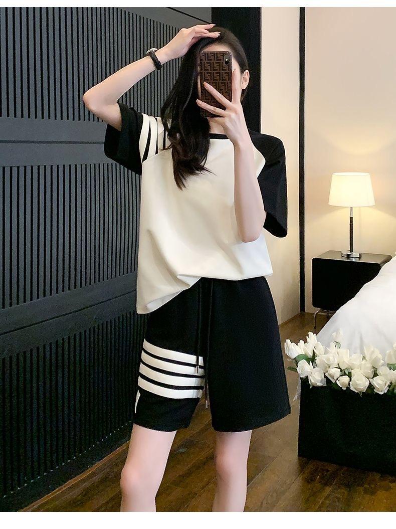 Novo terno verão 2025 esportes lazer moda solto emagrecimento elegante idade-reduzindo shorts conjunto de duas peças na moda