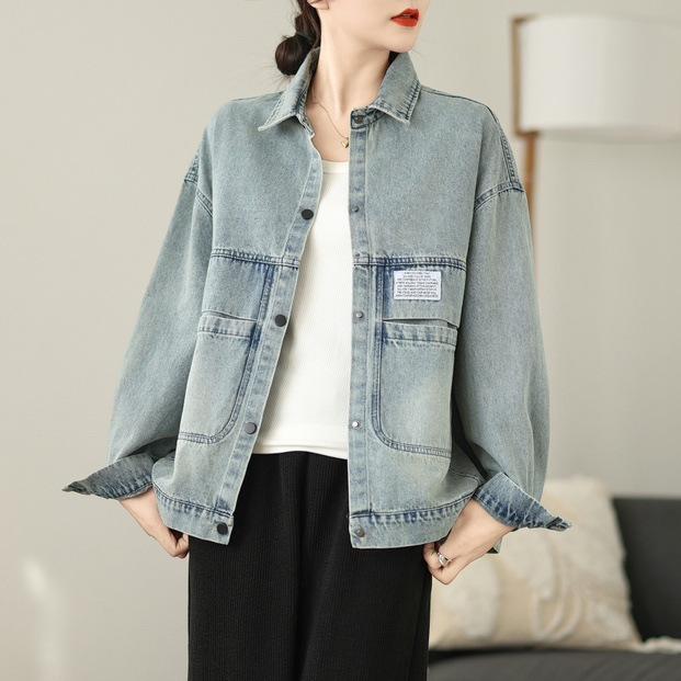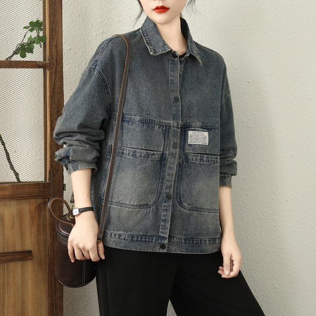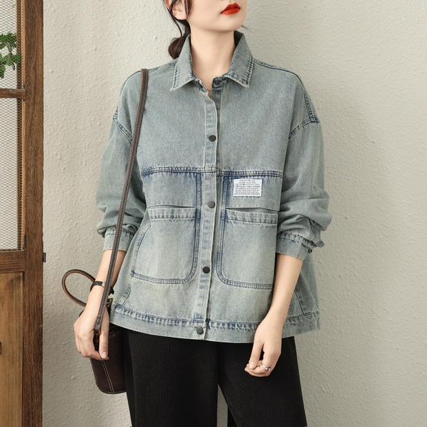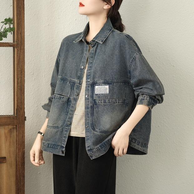 Casaco jeans feminino primavera artístico retrô nicho all-match solto plus size casual coreano jaqueta top 50021