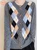 Primavera e Outono Novo Cardigan de Lã Penteada com Gola Redonda Feminino Cor Diamante Combinando Suéter de Malha Casual Solto Casaco Top