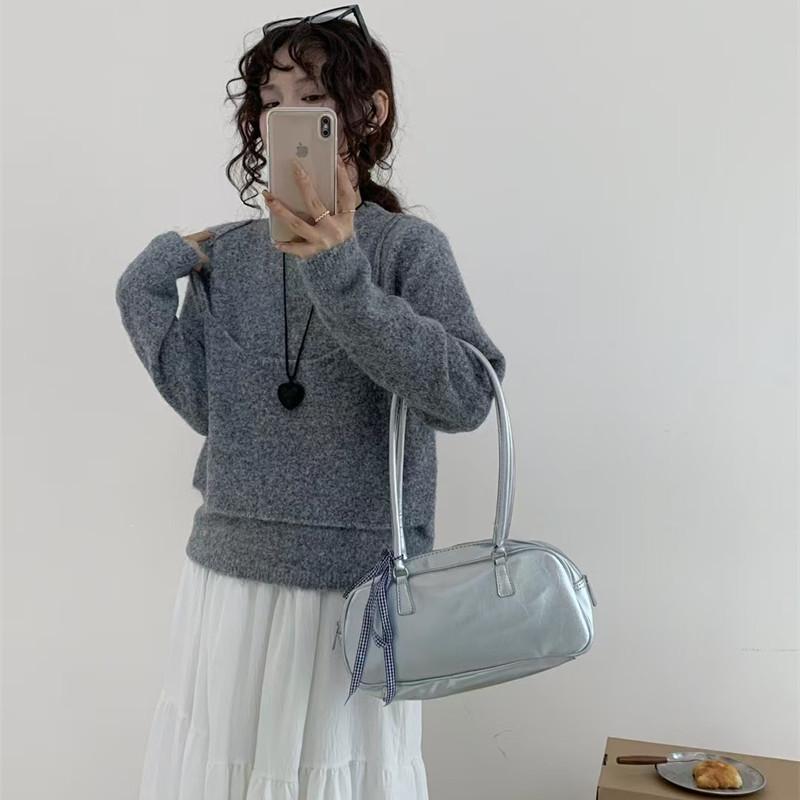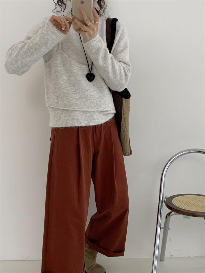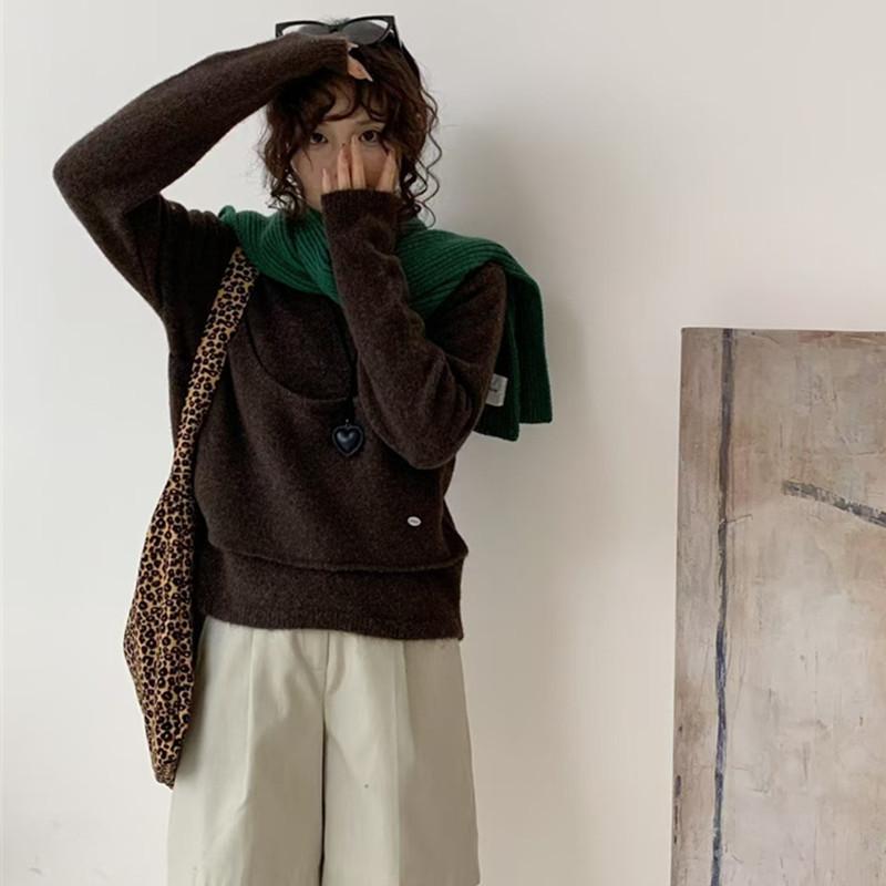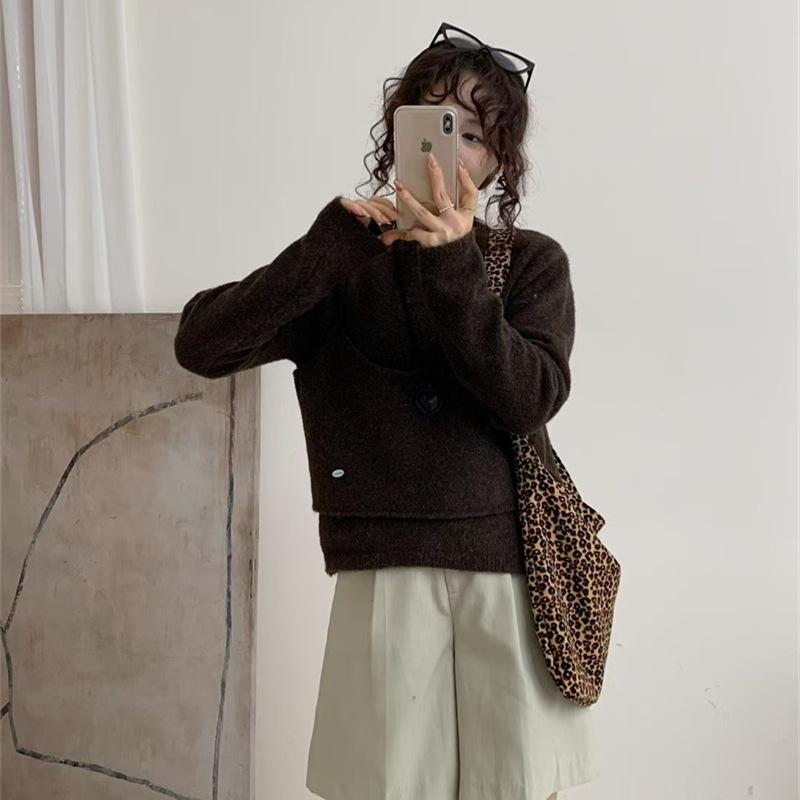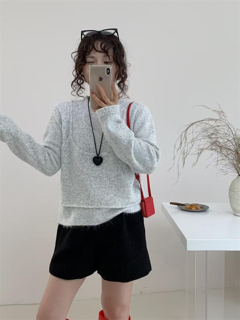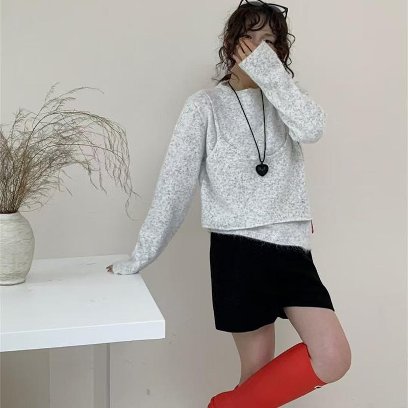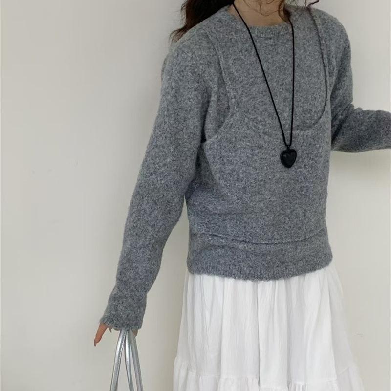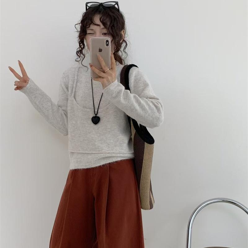 Estilo coreano Moda Design Sense Suéter de duas peças Feminino Outono e Inverno Novo Elegante Slimming Chic Pequeno Top de Malha