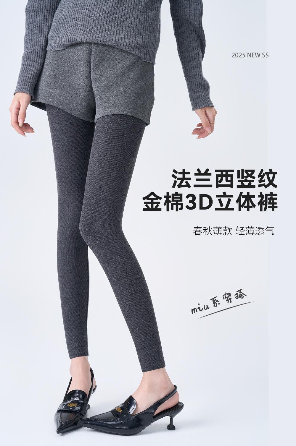 Leggings Finas Casuais de Primavera e Verão para Mulheres Padrão Vertical Francês Algodão Dourado Cintura Alta Controle da Barriga Empina Bumbum Calças de Yoga Calças
