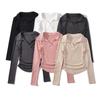 2025 Primavera e Outono Novo Estilo Americano Estilo Garota Quente Design de Ombro Sexy Manga Longa Top Feminino Slim-fit Emagrecimento Cor Sólida Camiseta