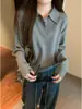 Suéter de manga comprida com gola polo estilo francês feminino outono e inverno novo estilo coreano solto pulôver interior fino look suéter all-match