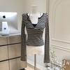2024 Moda Inverno Nicho Elegante All-match Base Camisa Renda Listrada Hot Girl Sweater Pure Sexy Top Feminino
