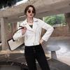 TH ~ linha Primavera e Outono Nova Jaqueta de Couro Preta Curta Clássica Americana para Motocicleta Jaqueta de Couro Simples e Limpa