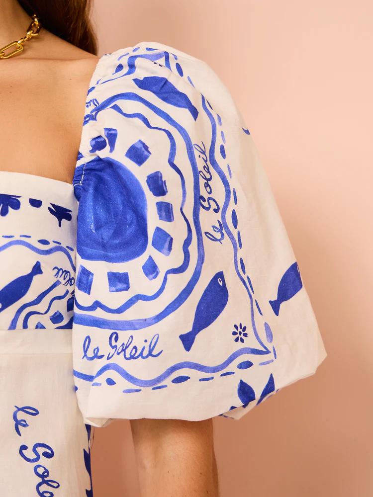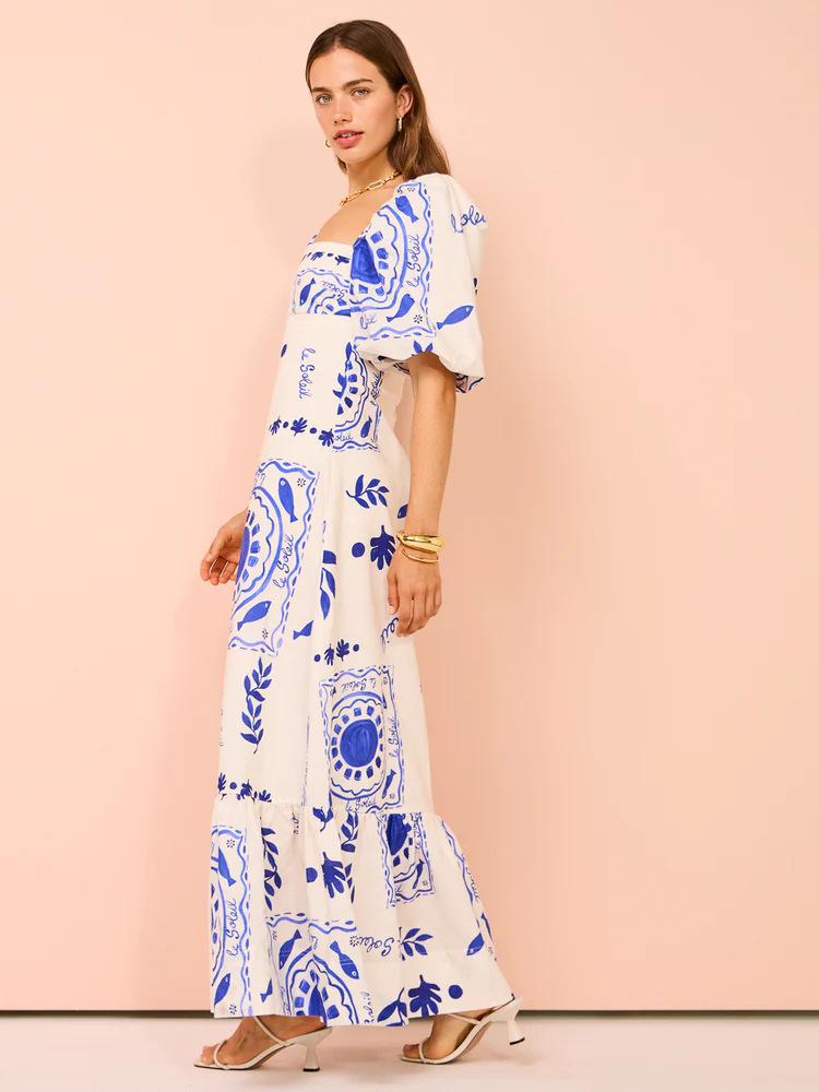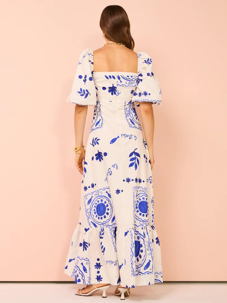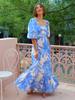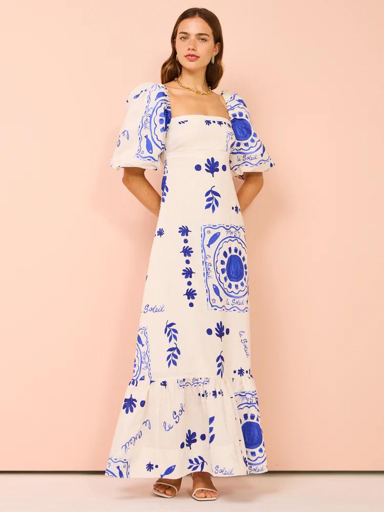 Ponto 25 Verão Novo Europeu e Americano Casual Gola de Uma Linha Estampado Manga Lanterna Vestido da Moda-68576