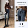 Calça Jeans Feminina Skinny Primavera e Outono Verão Cintura Alta Nove Pontos Elásticos Novo Estilo Fivela Slim-Fit Borda de Pele Calça Lápis