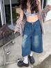 American Niche Design Sense Straight Jeans Feminino 2024 Verão Casual Solto Cintura Alta Perna Larga Calças Cropped