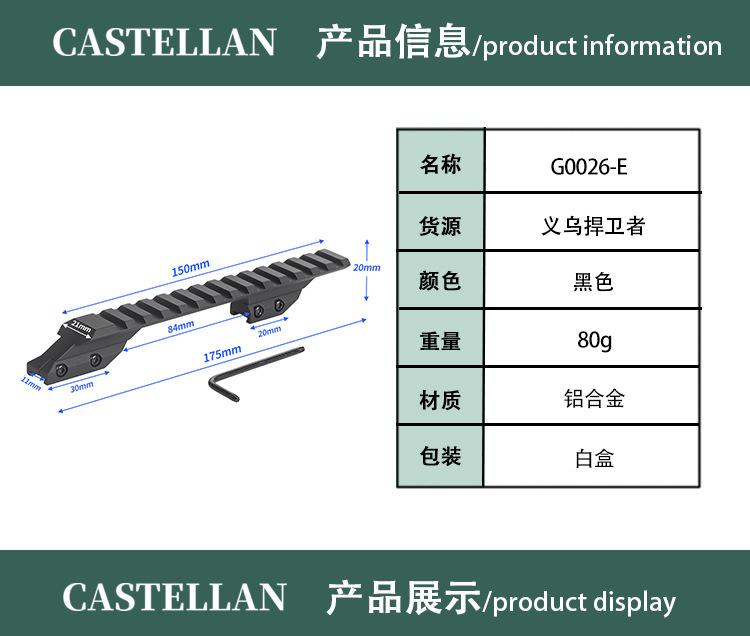 Adaptador de trilho de 11 voltas de 20 mm, adaptador de largura de volta estreita de alumínio de 175 mm, base de mira aumentada