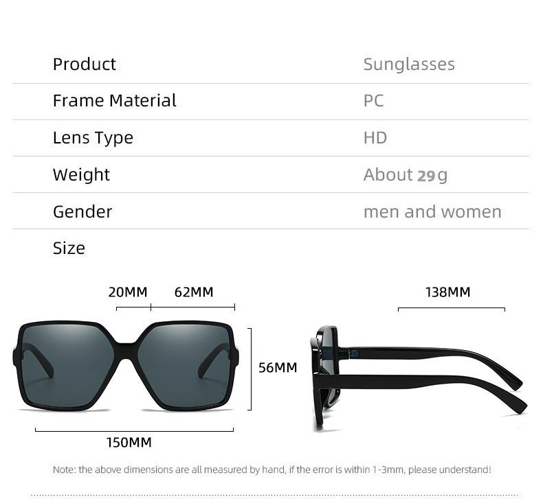 Novos óculos de sol quadrados de armação grande europeus e americanos, personalizados, todos os tipos de óculos de sol femininos, óculos de sol da moda transfronteiriços