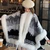 Novo Estilo Outono 2023 Cor Contrastante Inverno Suave Peludo Capa Xale Gola de Pele Grande Estilo Solto Preguiçoso Casaco Externo da Moda