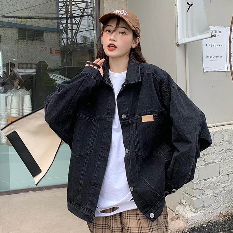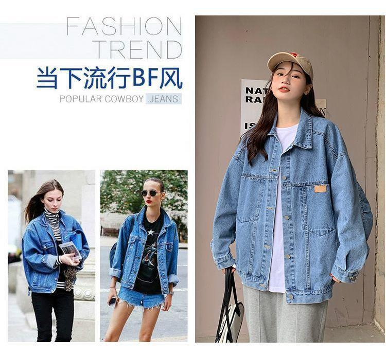 Plus size Loose Denim Jacket Primavera e Outono das Mulheres Nova Chegada All-Match Hong Kong Estilo Grande Bolso Jacket Top Ins Trendy