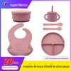 Conjunto de 10 peças de silicone para bebês, prato, tigela, bolso de arroz, copo, babador, refeição, prato de silicone de grau alimentício