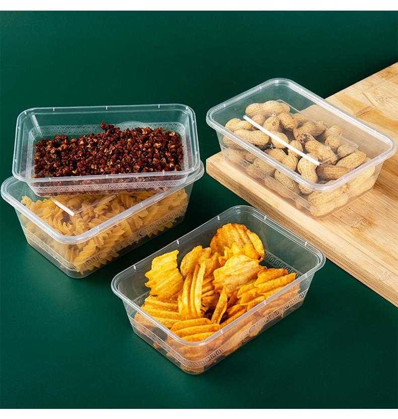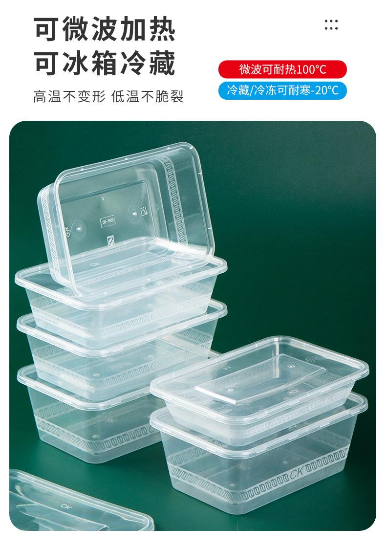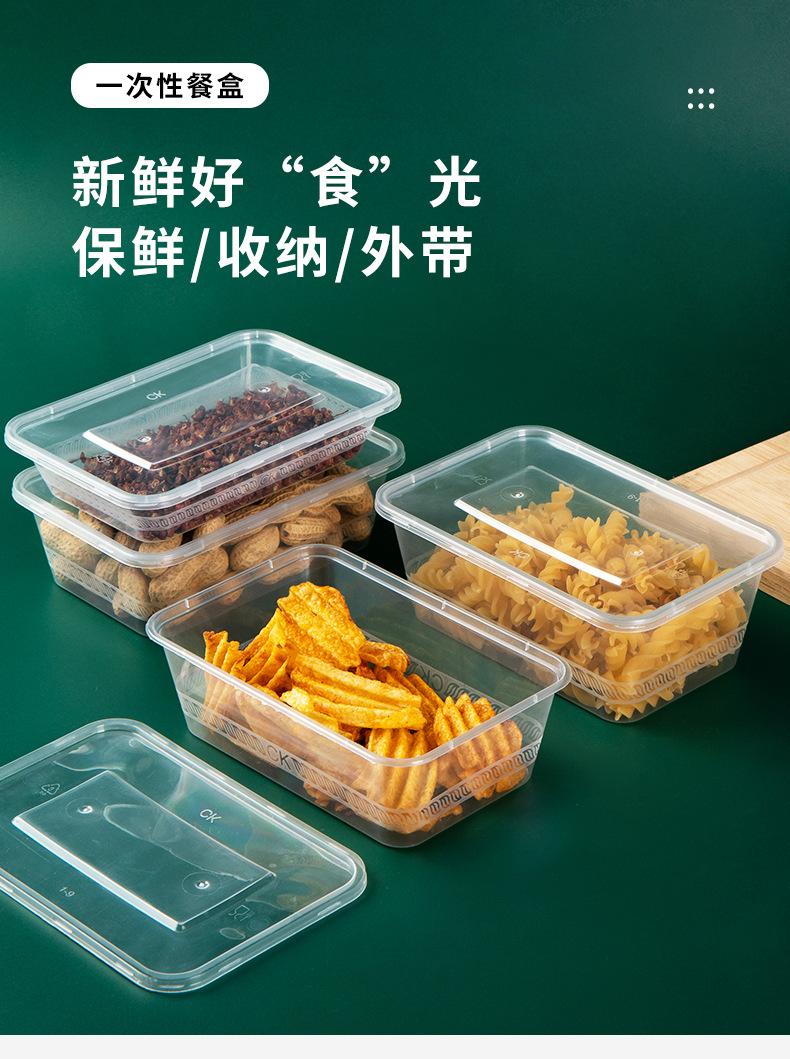 Caixa de almoço descartável, caixa de embalagem de louças, lancheira para viagem, lancheira retangular de plástico de qualidade alimentar com tampa