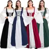 Comércio Exterior Europeu e Americano Medieval Renascentista Vestido Longo Vestido Retrô com Cintura de Amarrar Vestido Longo de Corte Roupa Feminina