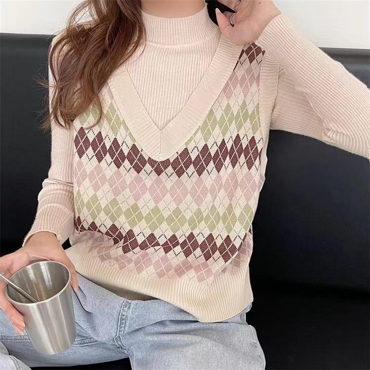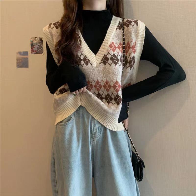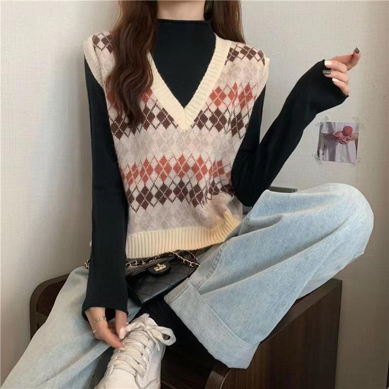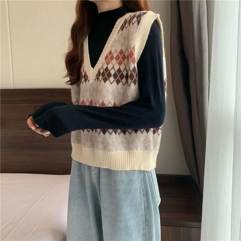 2025 Novo Outono e Inverno Estilo Coreano Curto Solto Decote V Diamante Tricotado Colete Suéter Colete para Mulheres