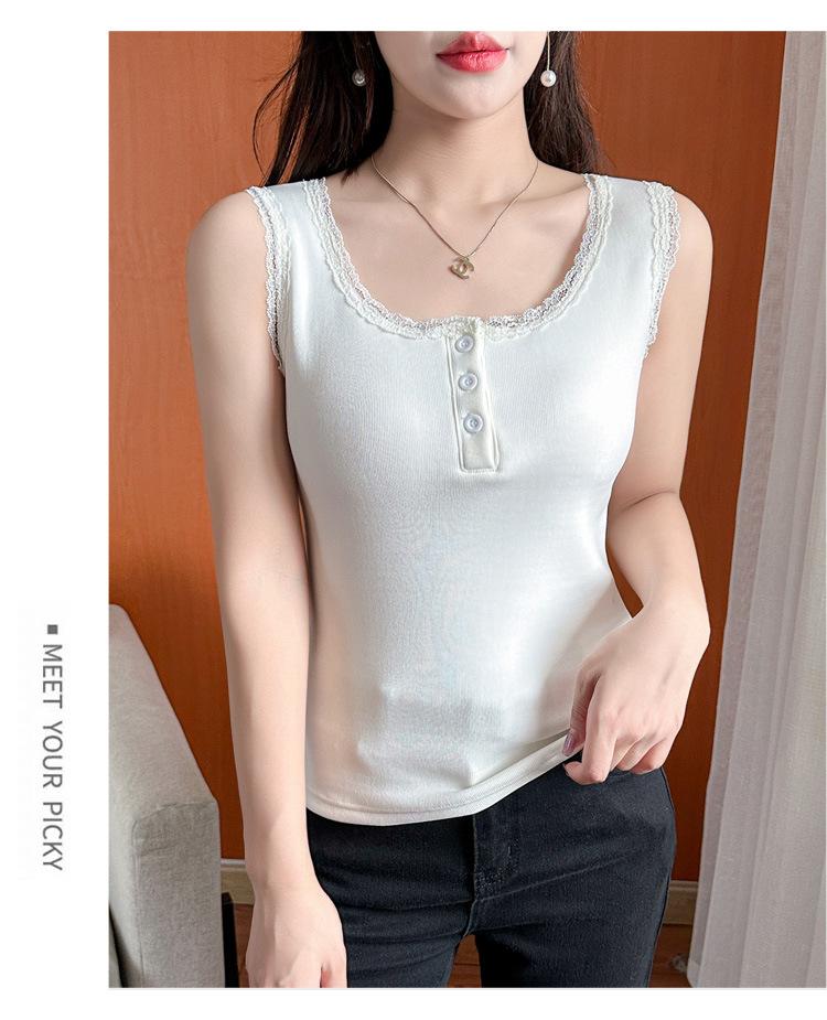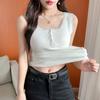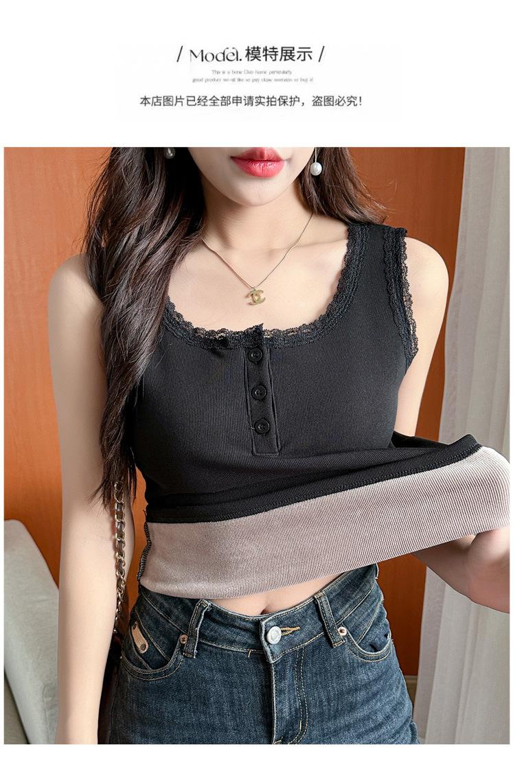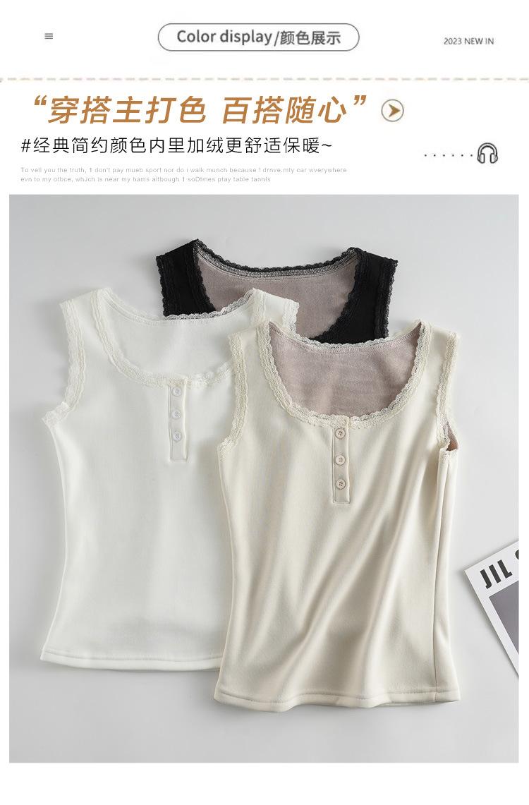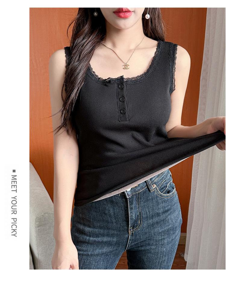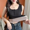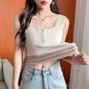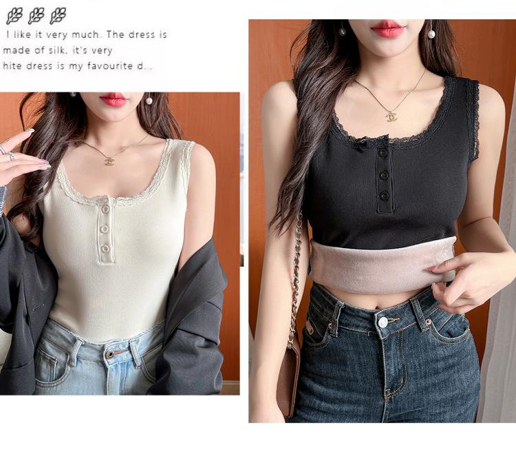 Colete quente de outono e inverno feminino, forrado de lã, gola redonda grossa, botões, ajuste fino, peça única, veludo, top quente, camisa básica feminina