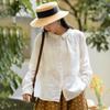 Novo Cardigã Curto de Algodão e Linho Estampado Outono 2025 Tops Femininos Retrô Soltos Tamanho Grande Manga Longa Gola Alta