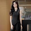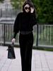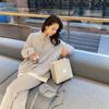 Terno esportivo redutor de idade estilo ocidental 2023 primavera e outono roupas femininas falso suéter de malha de duas peças calças largas terno casual de duas peças