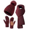Cross-border Hot em estoque Adulto 9 cores Homens e Mulheres Tricô Chapéu Cachecol Tela de Toque Luvas Conjunto de 3 peças