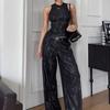 Conjunto de duas peças estilo resort sexy com suspensório listrado e babados Amazon Summer 2024