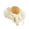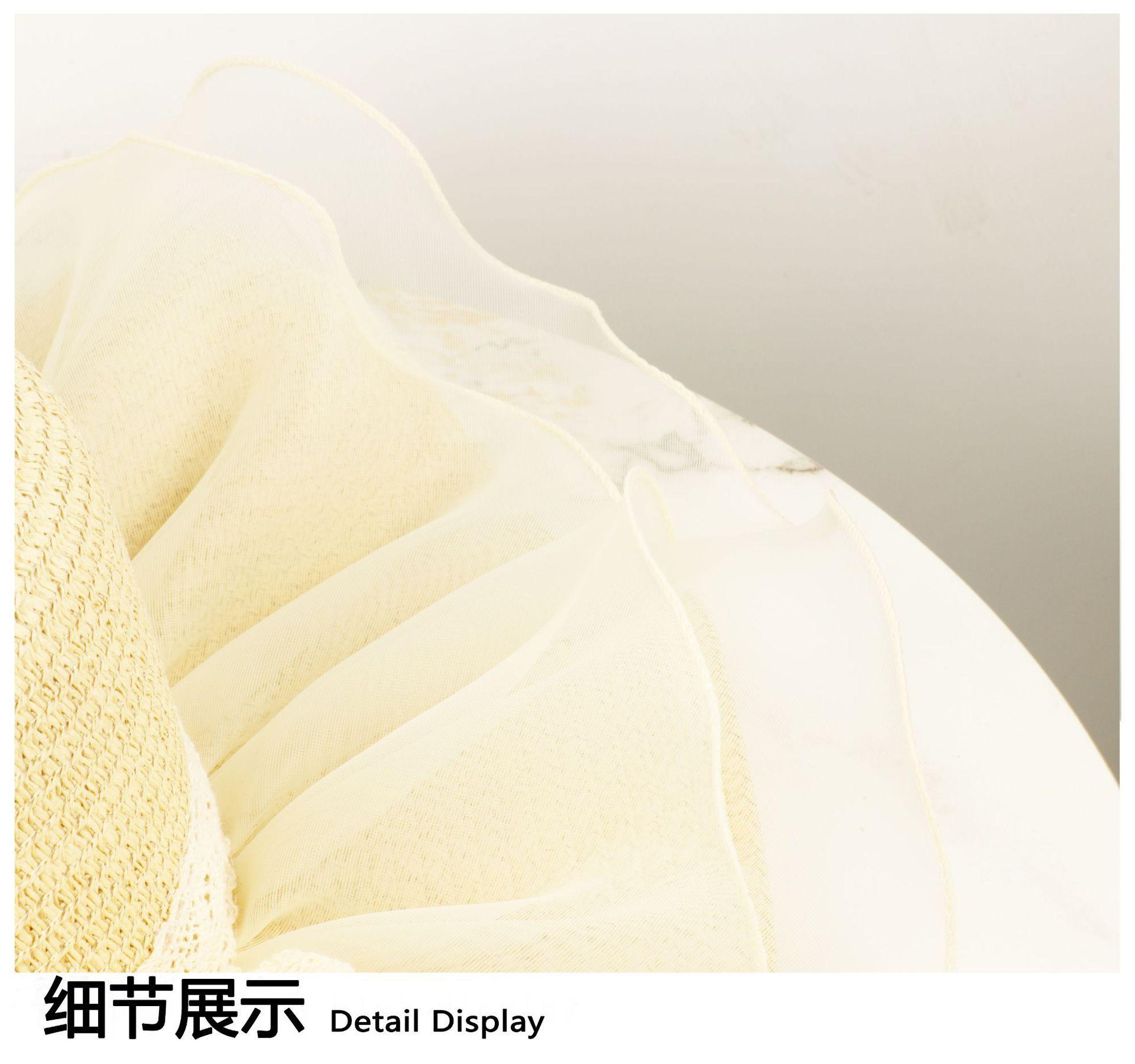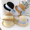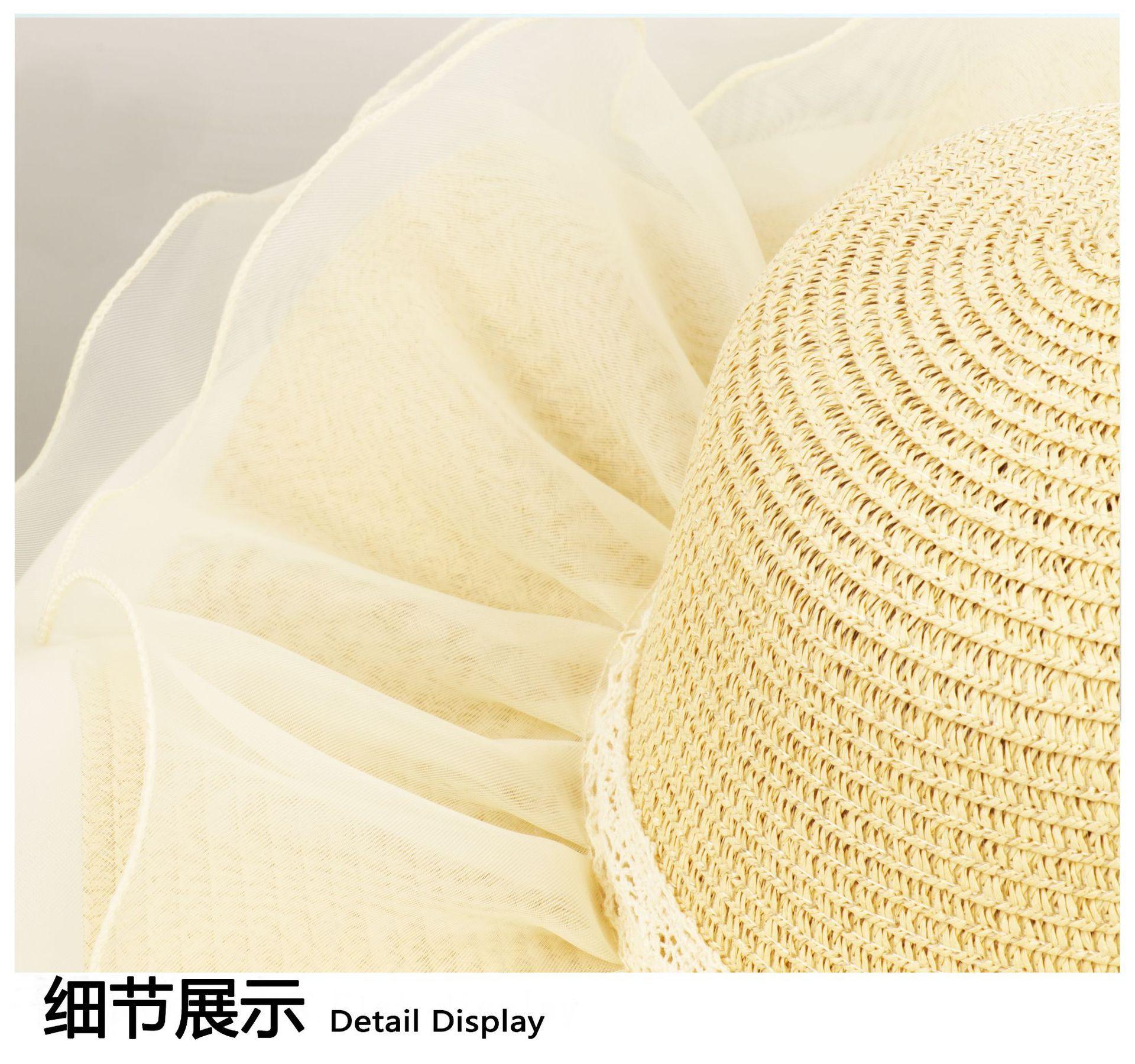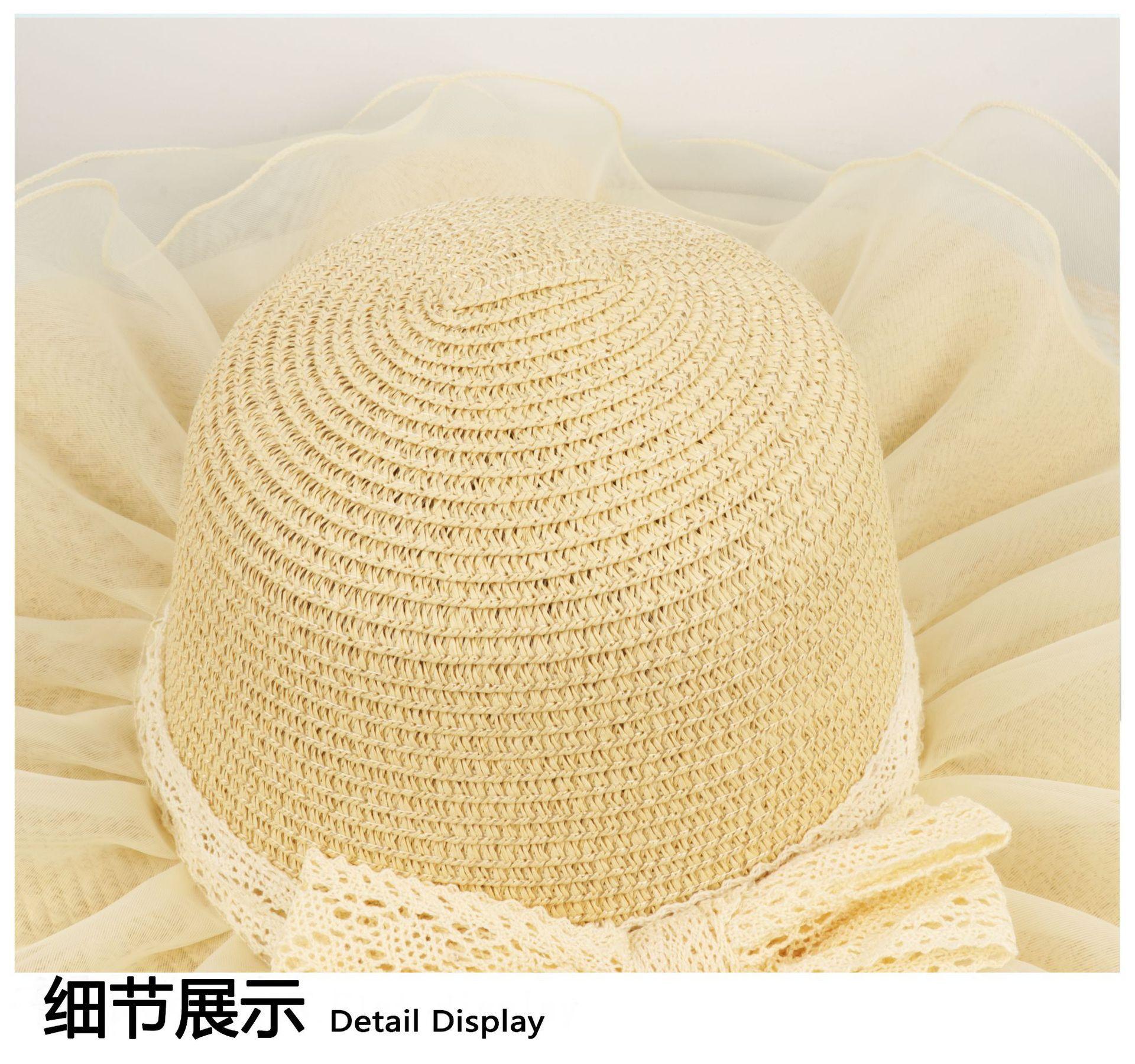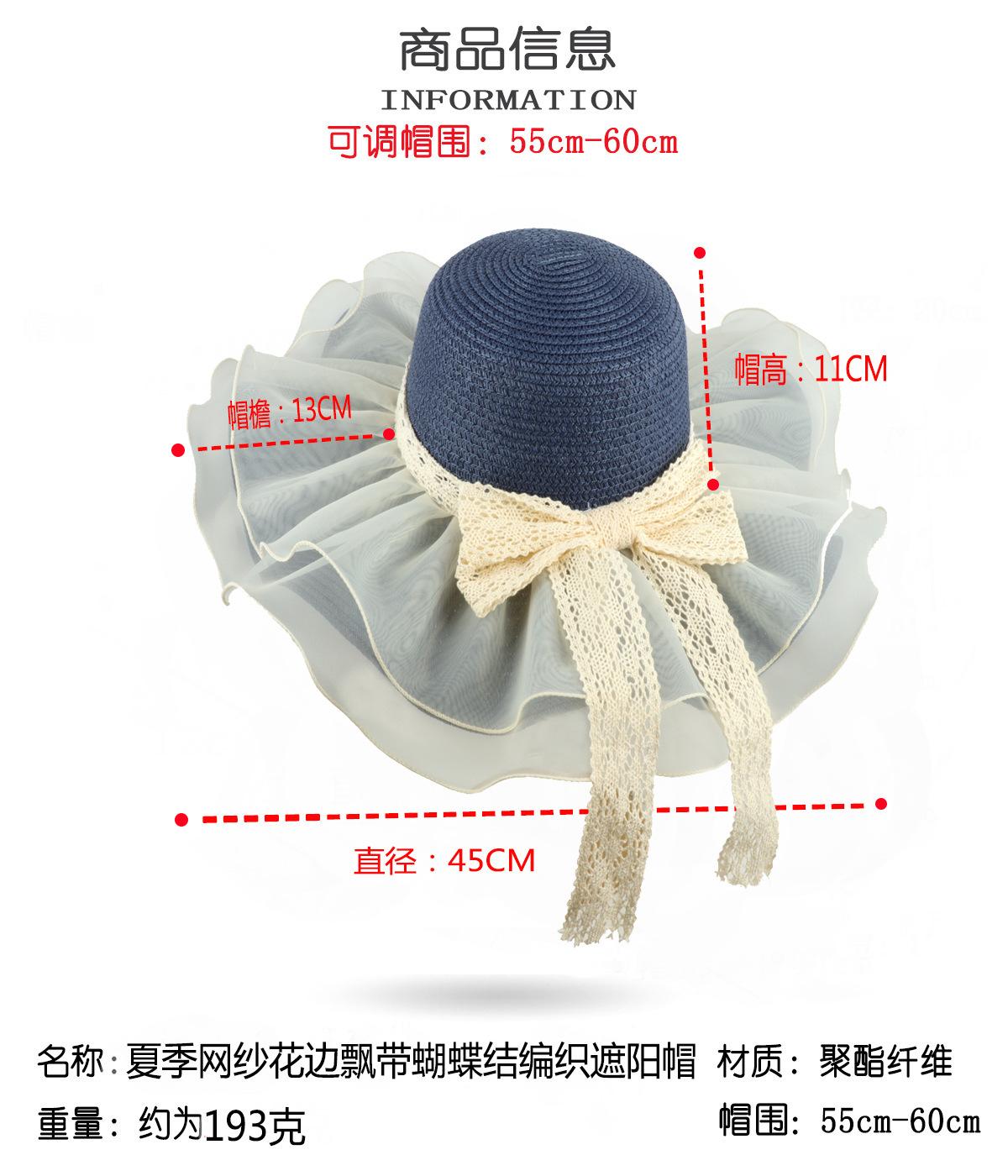 Chapéu de palha com aba francesa de malha de renda e laço de fita para mulheres, chapéu de sombra trançado para férias na praia, chapéu de malha de renda