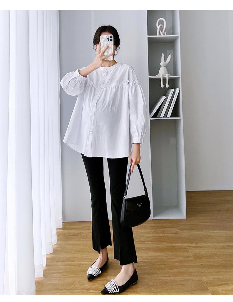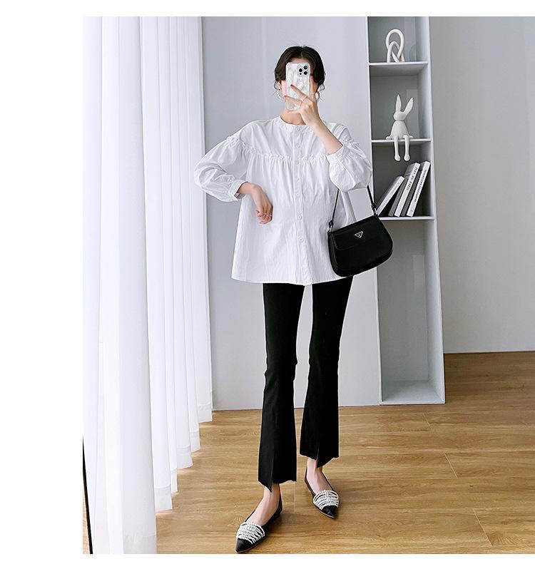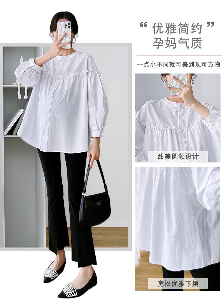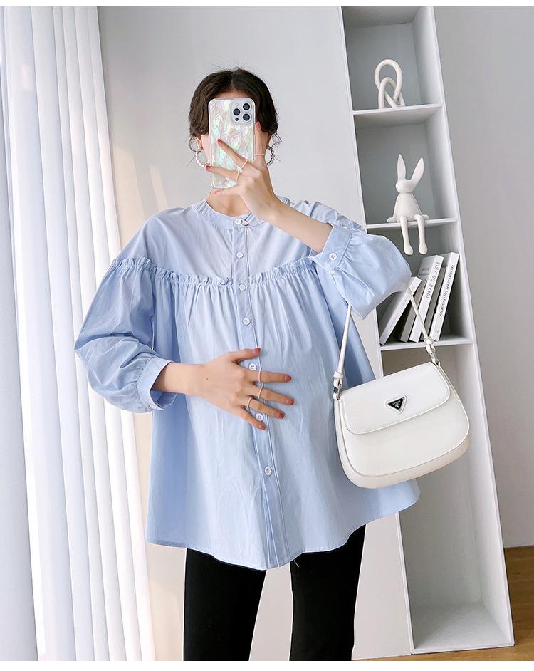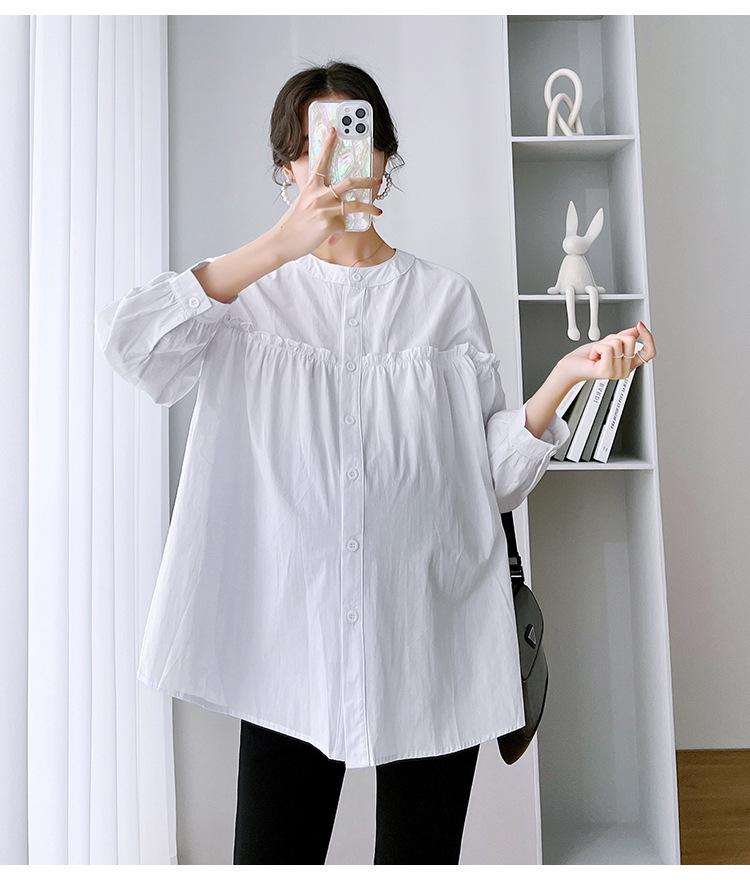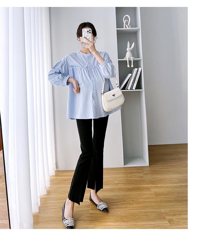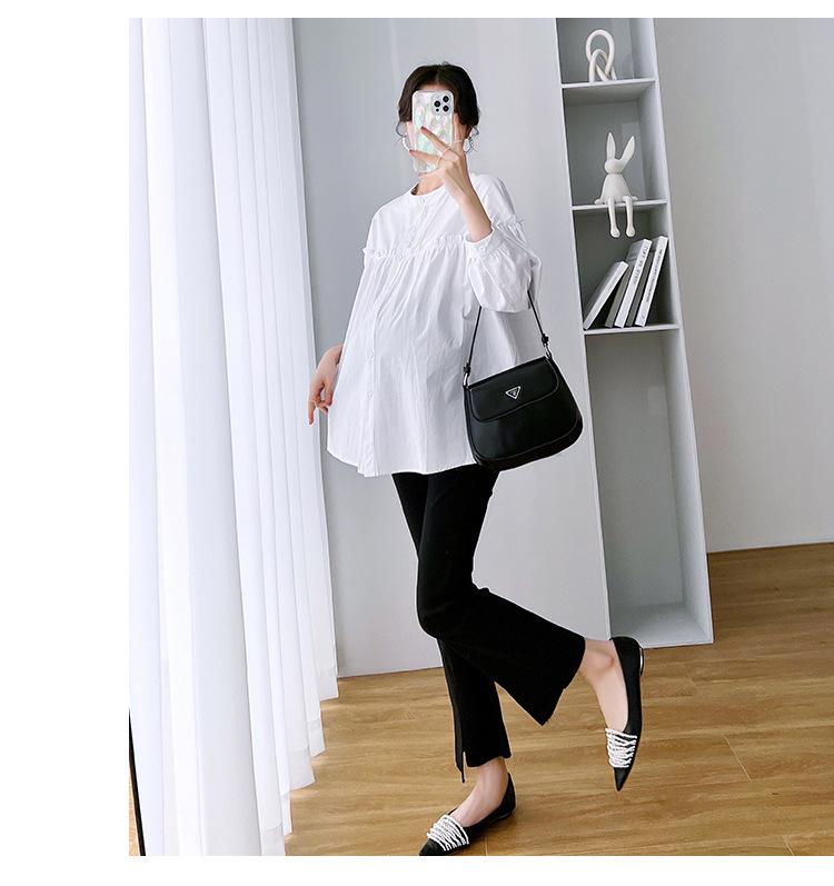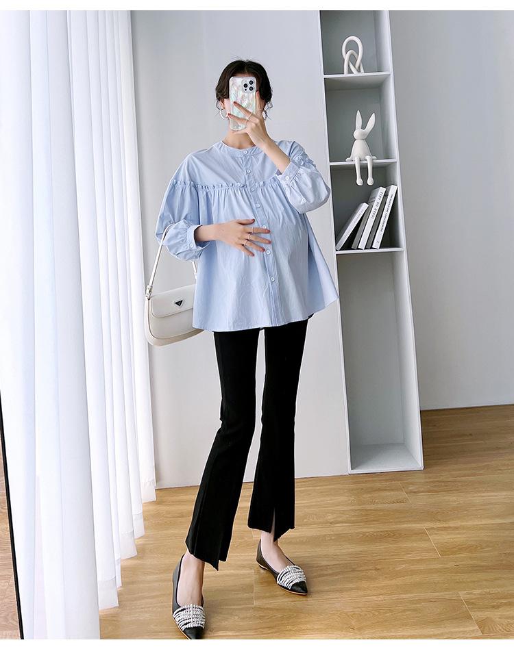 Em estoque Maternidade 2024 Outono Estilo Gola Moda Mulheres Grávidas Camisa de Algodão Solta Casual Mulheres Grávidas Top