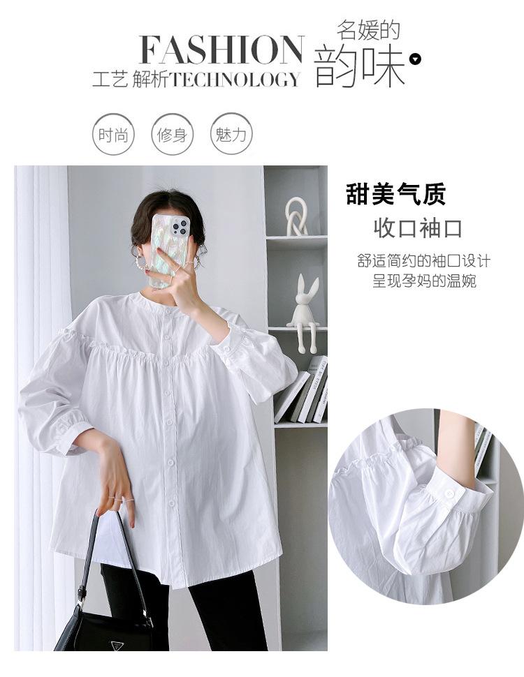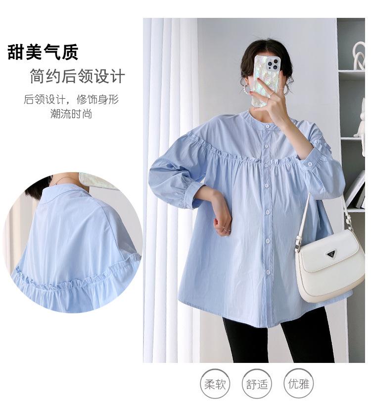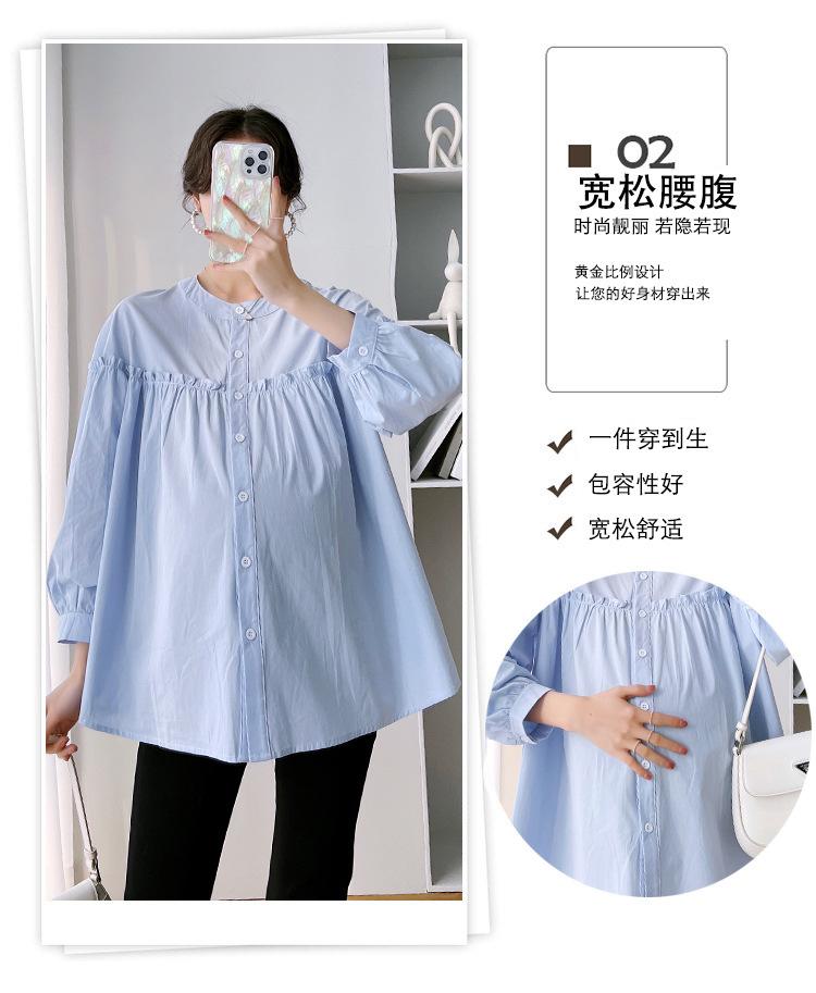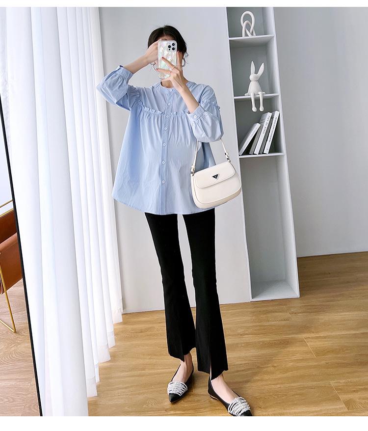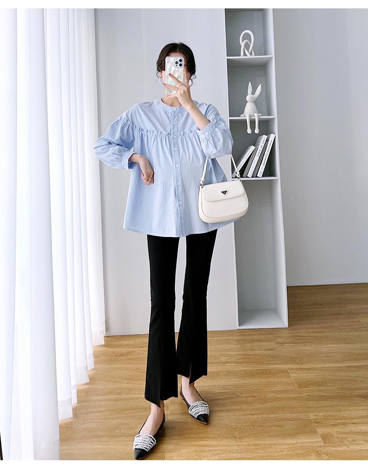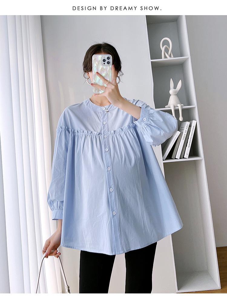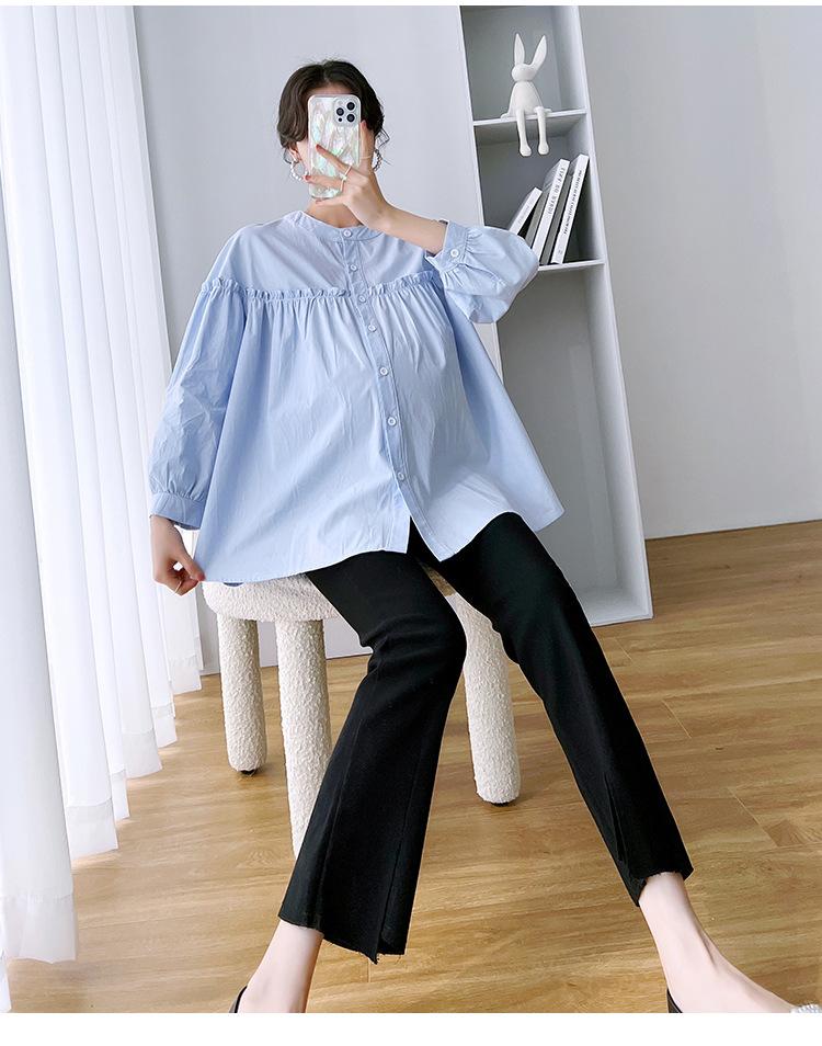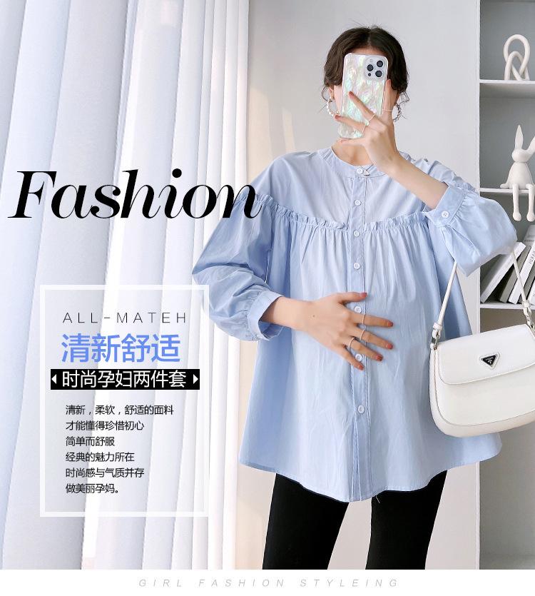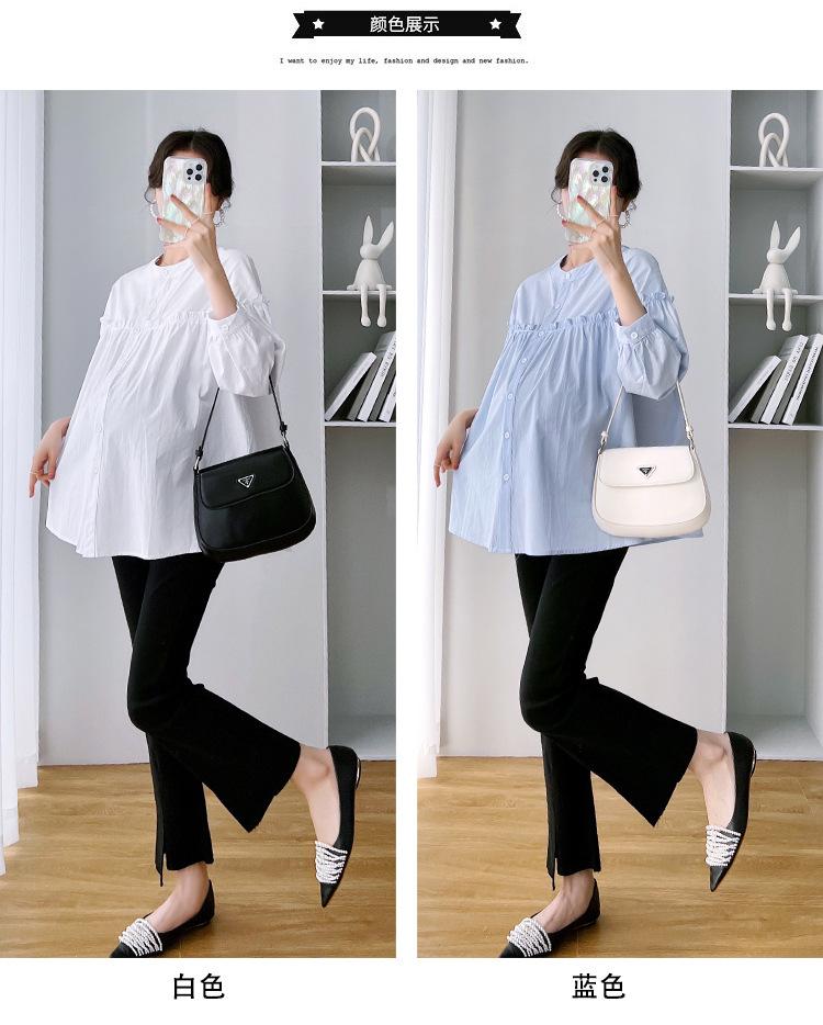 Em estoque Maternidade 2024 Outono Estilo Gola Moda Mulheres Grávidas Camisa de Algodão Solta Casual Mulheres Grávidas Top