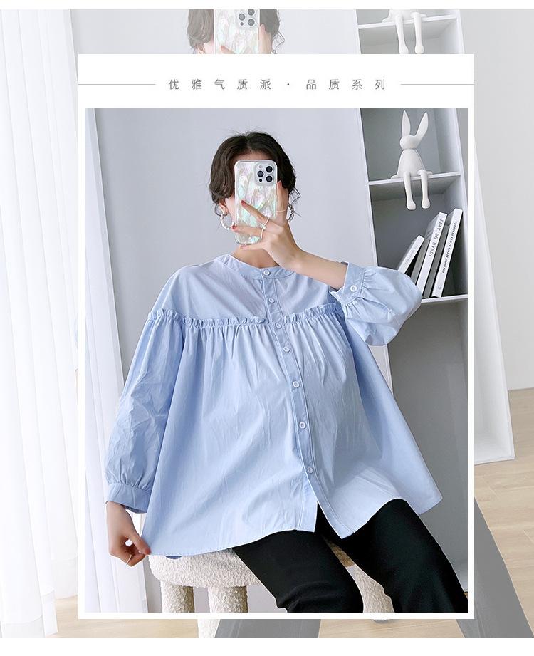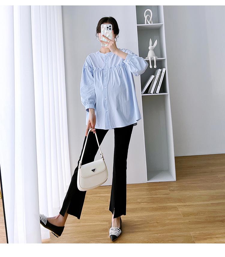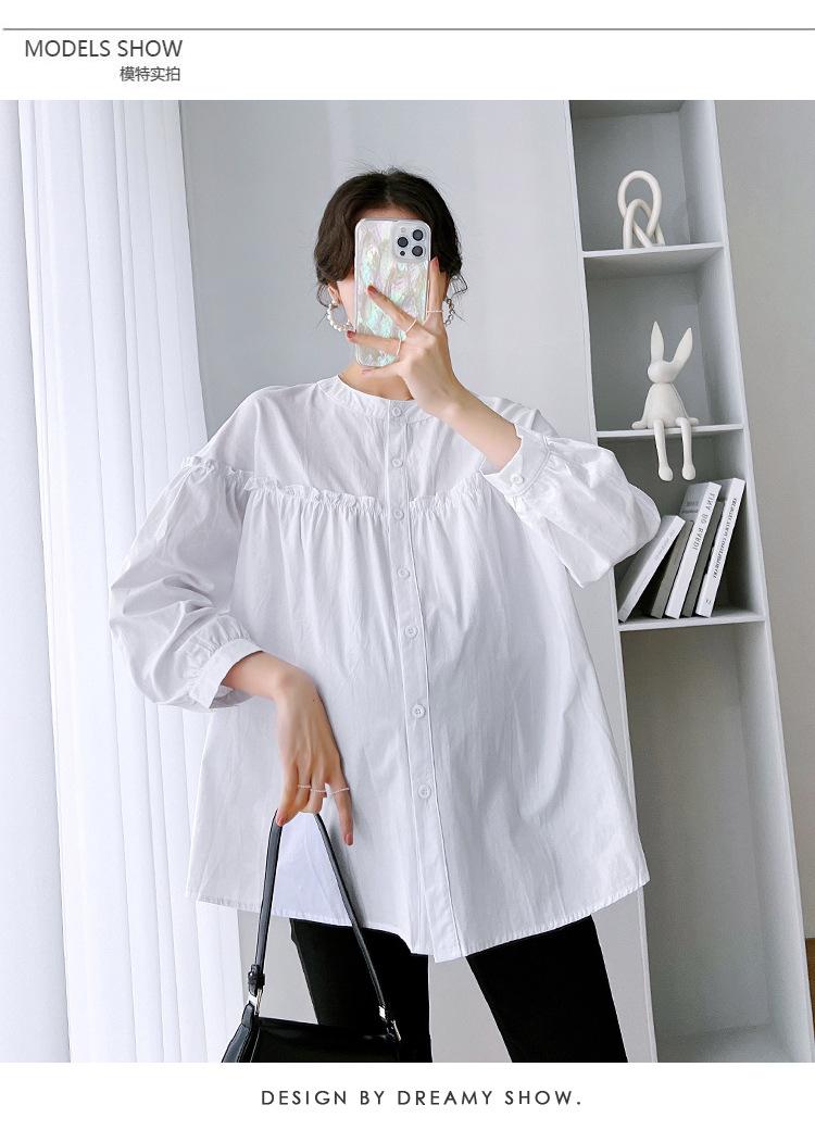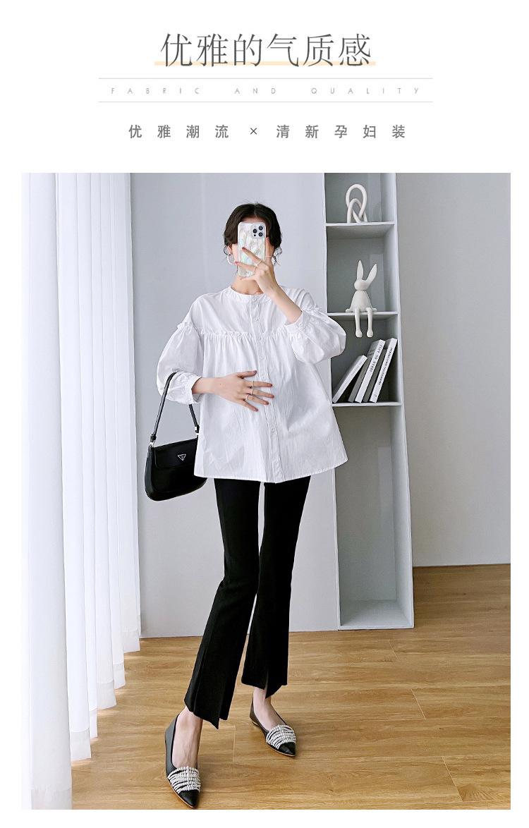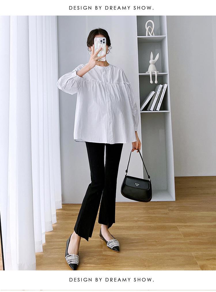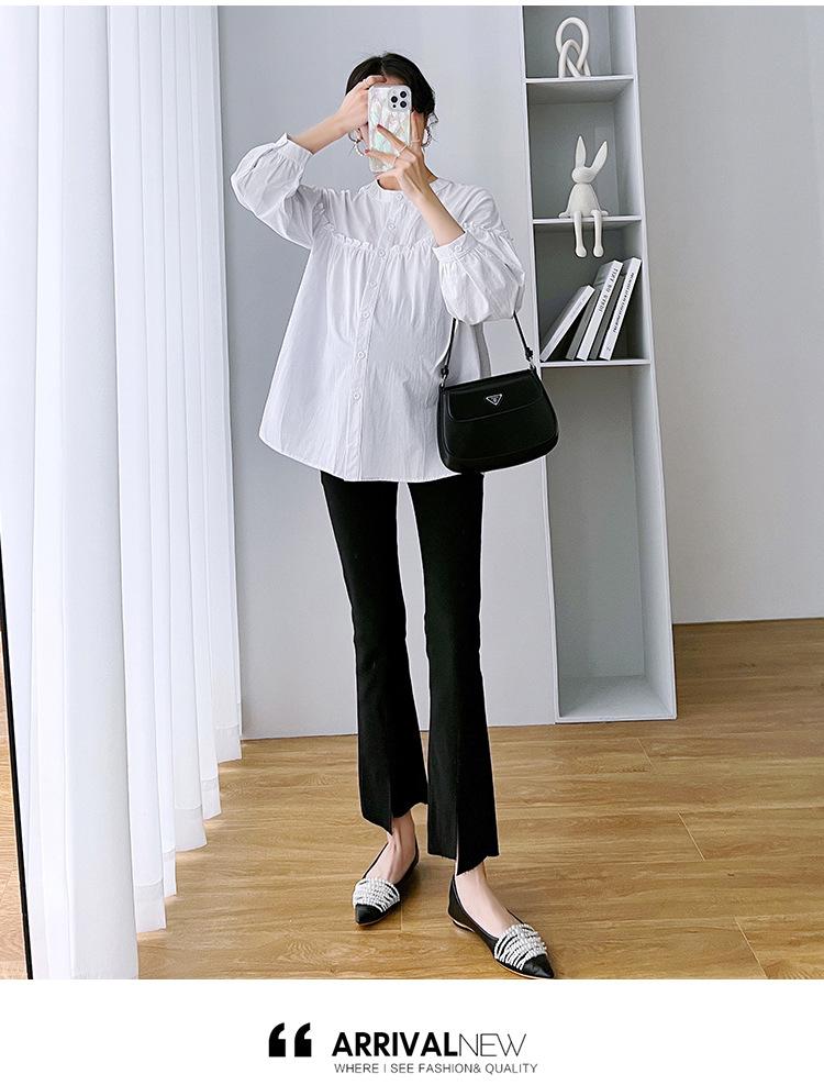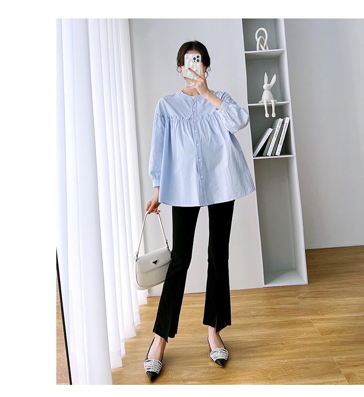 Em estoque Maternidade 2024 Outono Estilo Gola Moda Mulheres Grávidas Camisa de Algodão Solta Casual Mulheres Grávidas Top