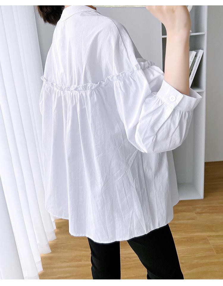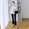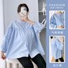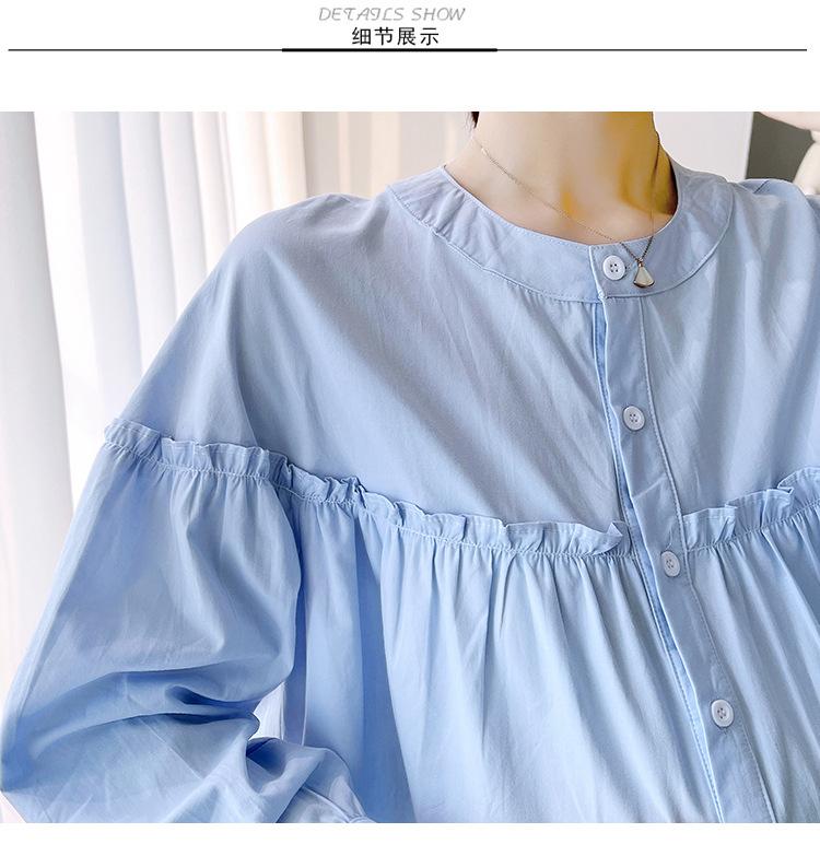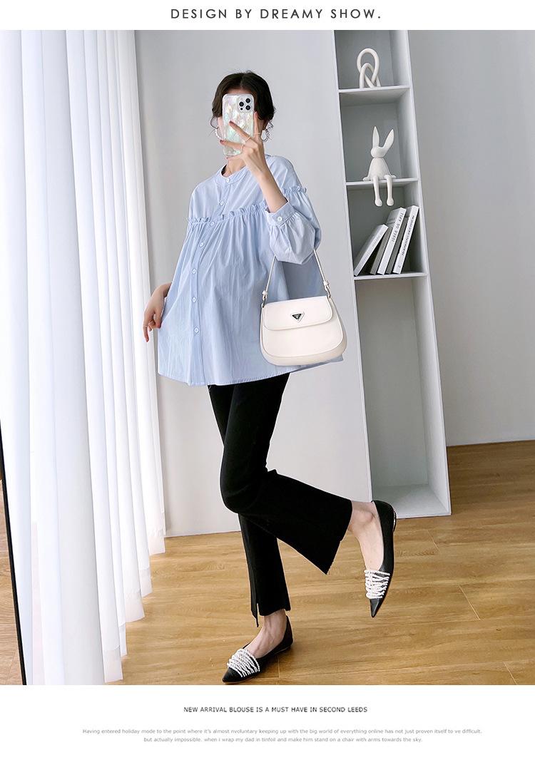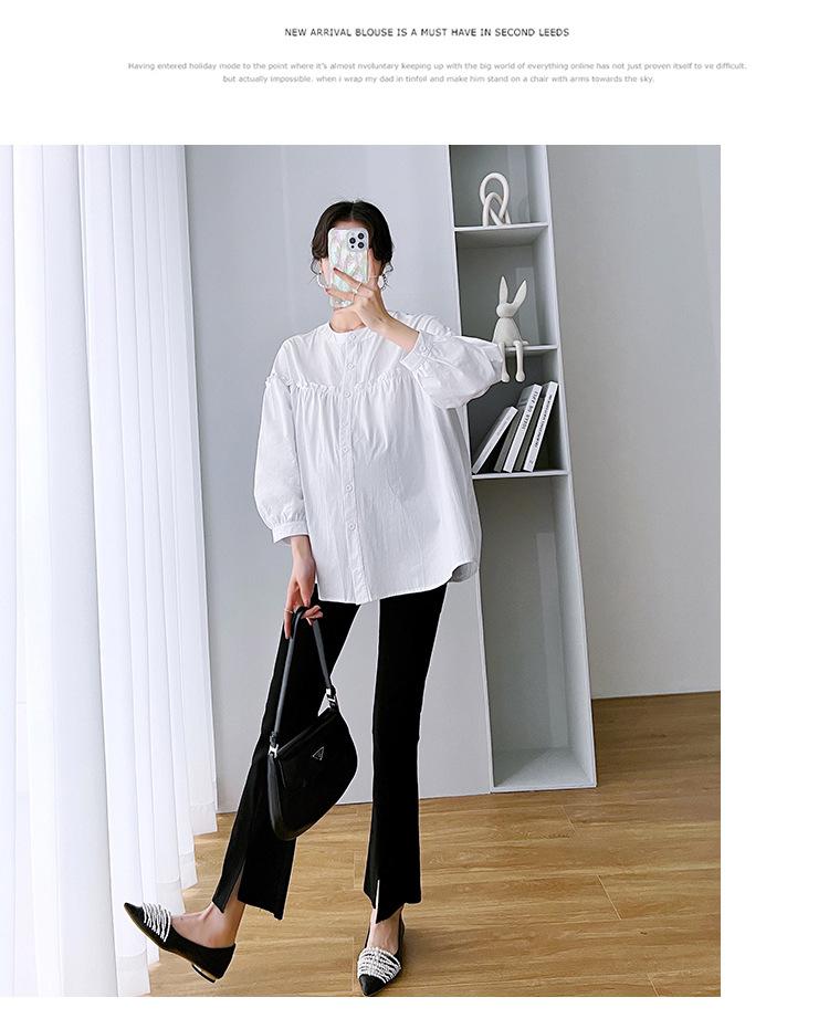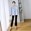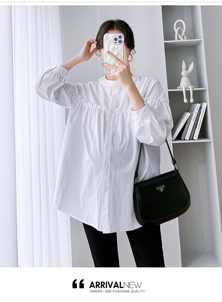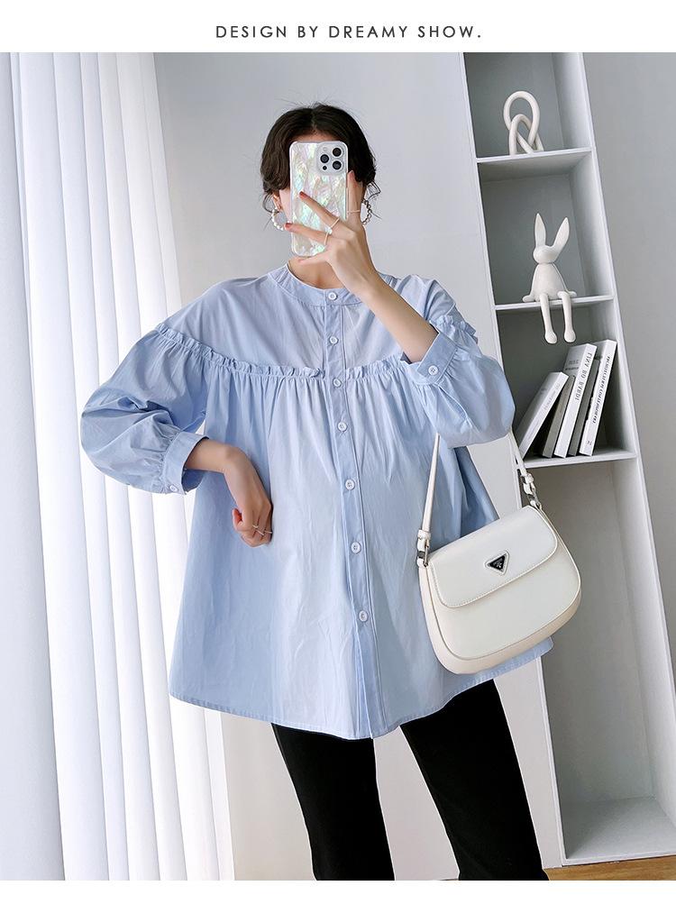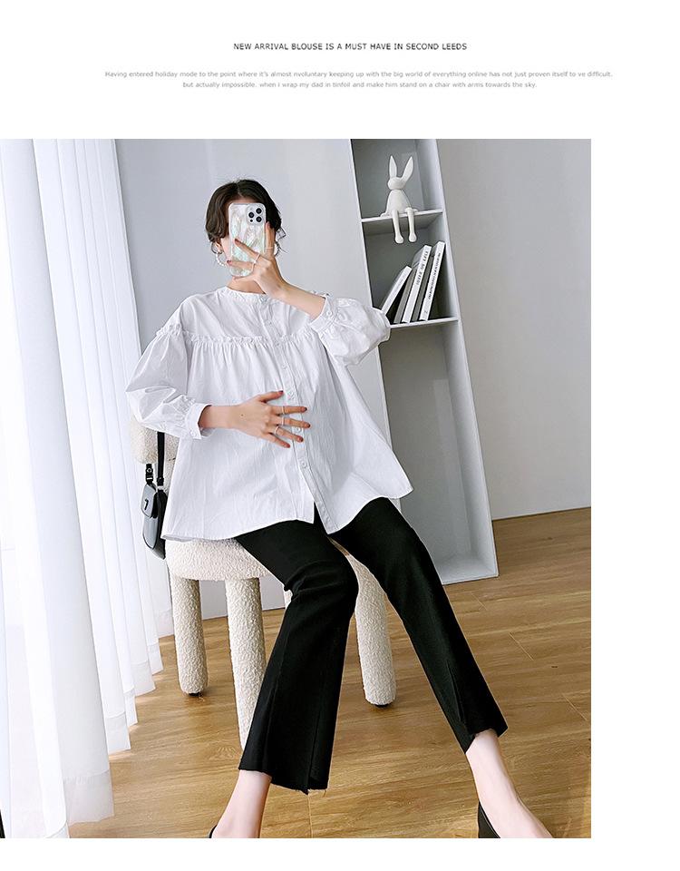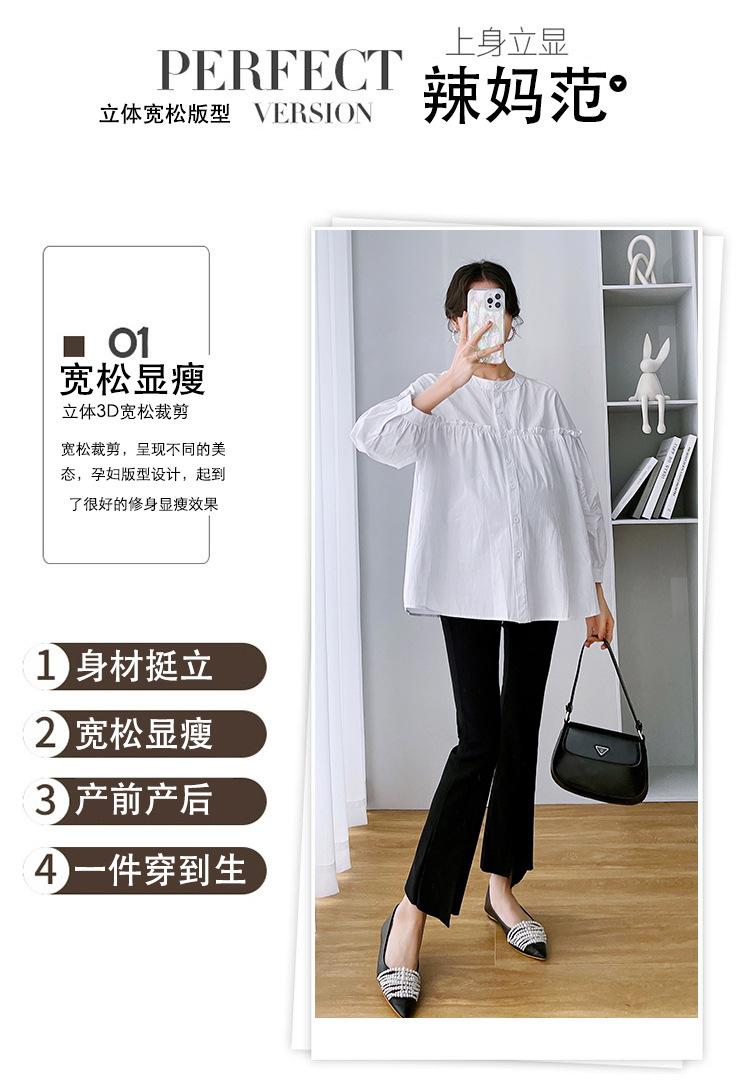 Em estoque Maternidade 2024 Outono Estilo Gola Moda Mulheres Grávidas Camisa de Algodão Solta Casual Mulheres Grávidas Top