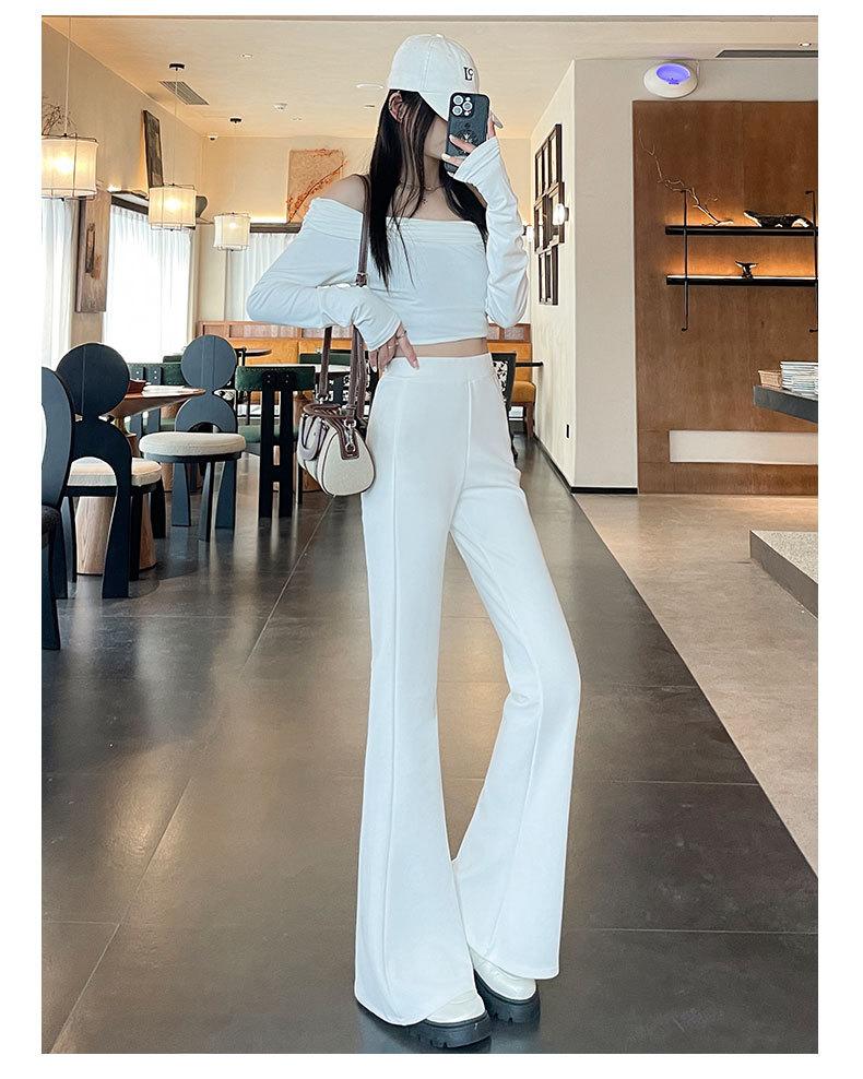 Calças Flare de Terno Preto para Mulheres 2025 Novo Outono Calças Brancas Cintura Alta Emagrecimento Simples Calças Bootcut para Mulheres