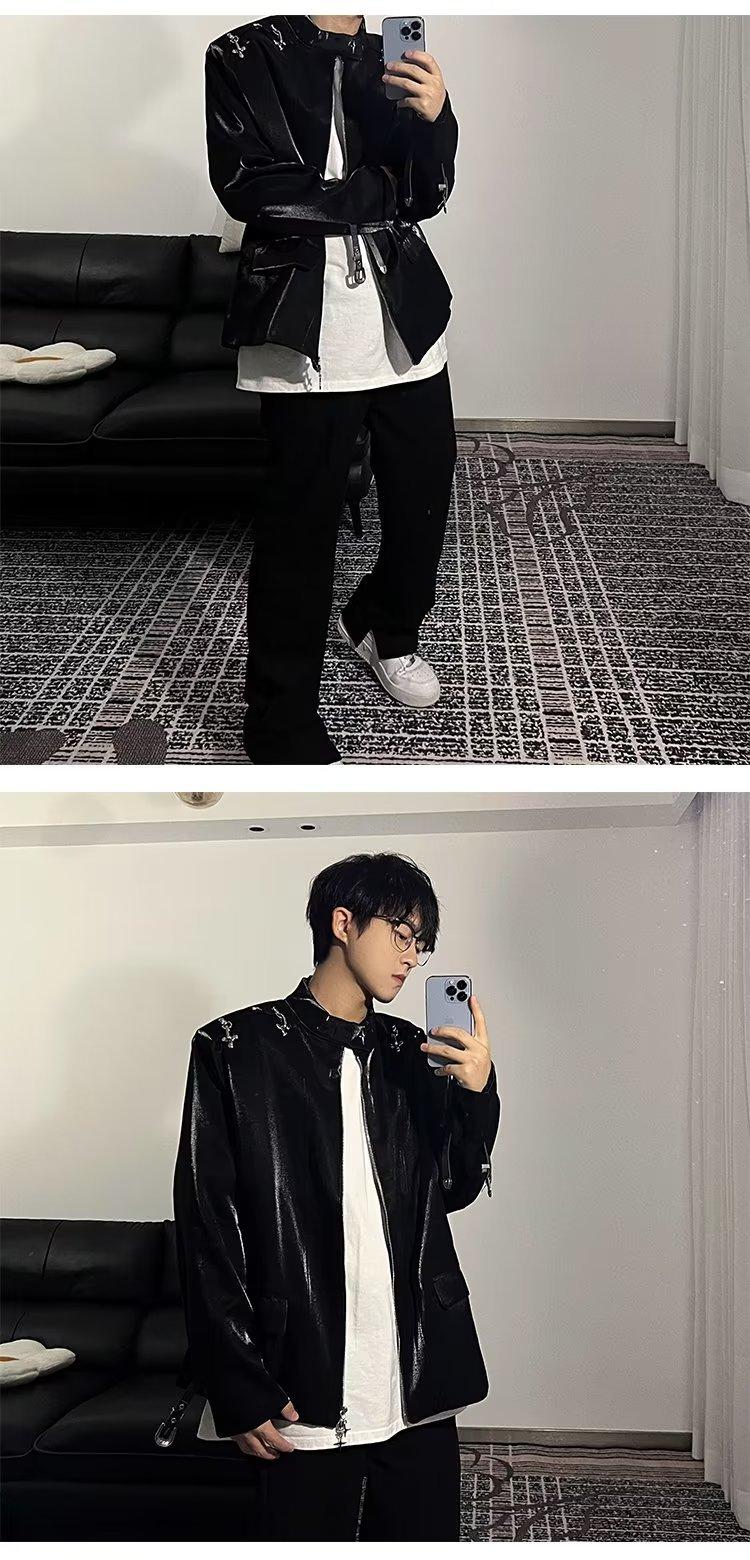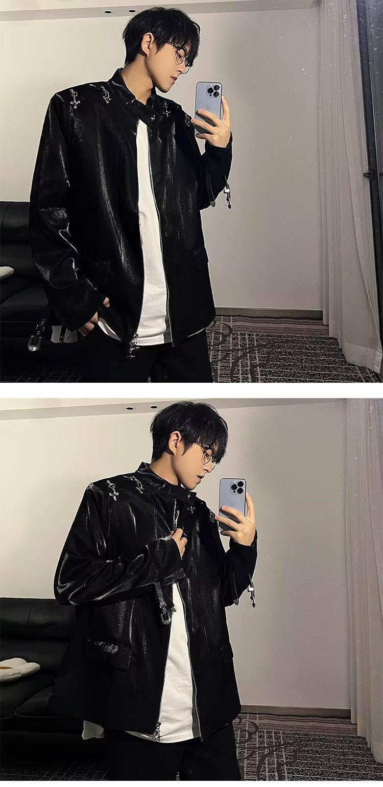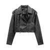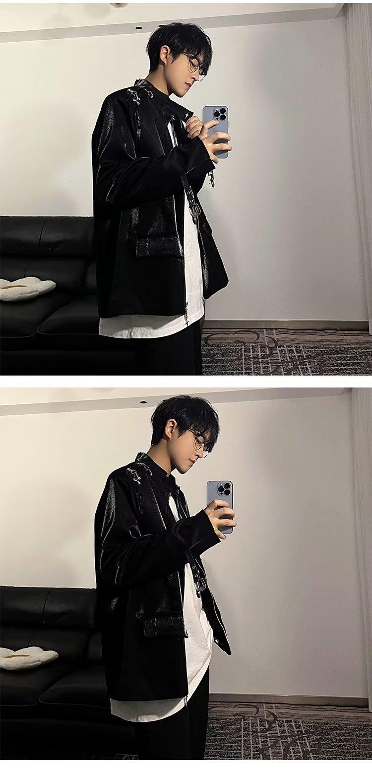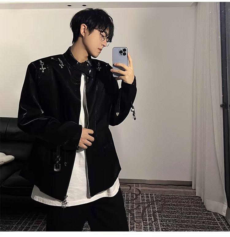 Ruoshuai preto gola alta ombreira jaqueta top design fivela de aeronave sentido casaco roupas de motociclista