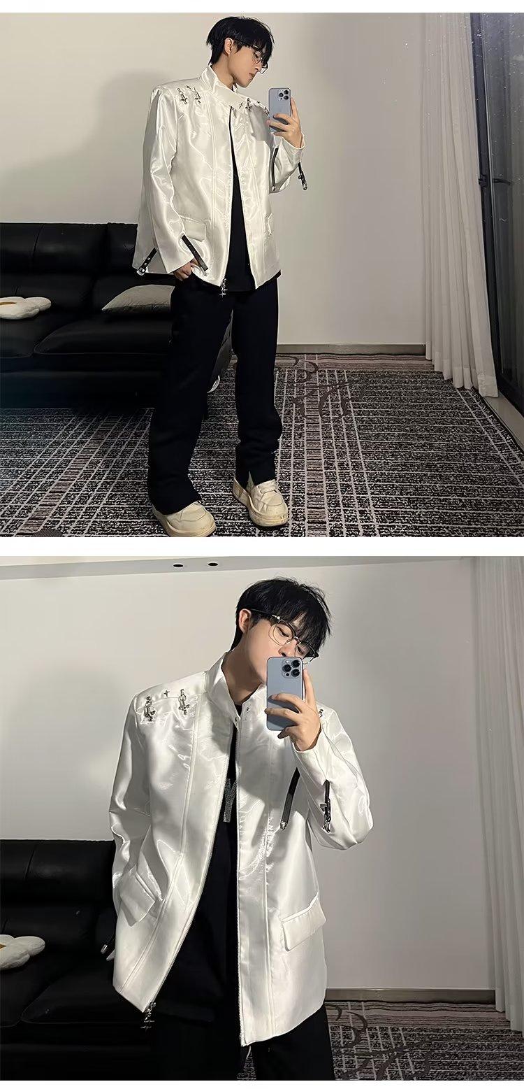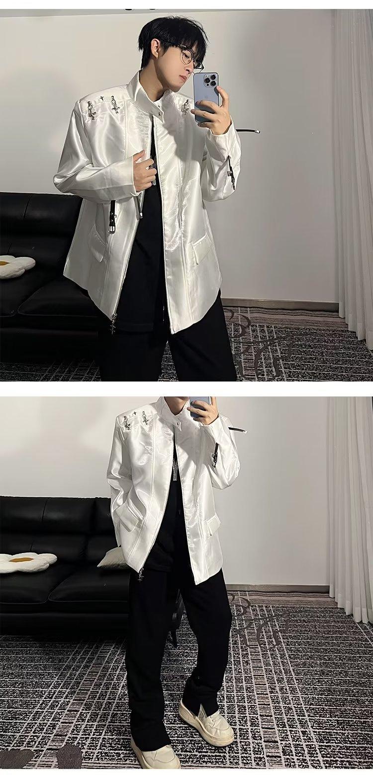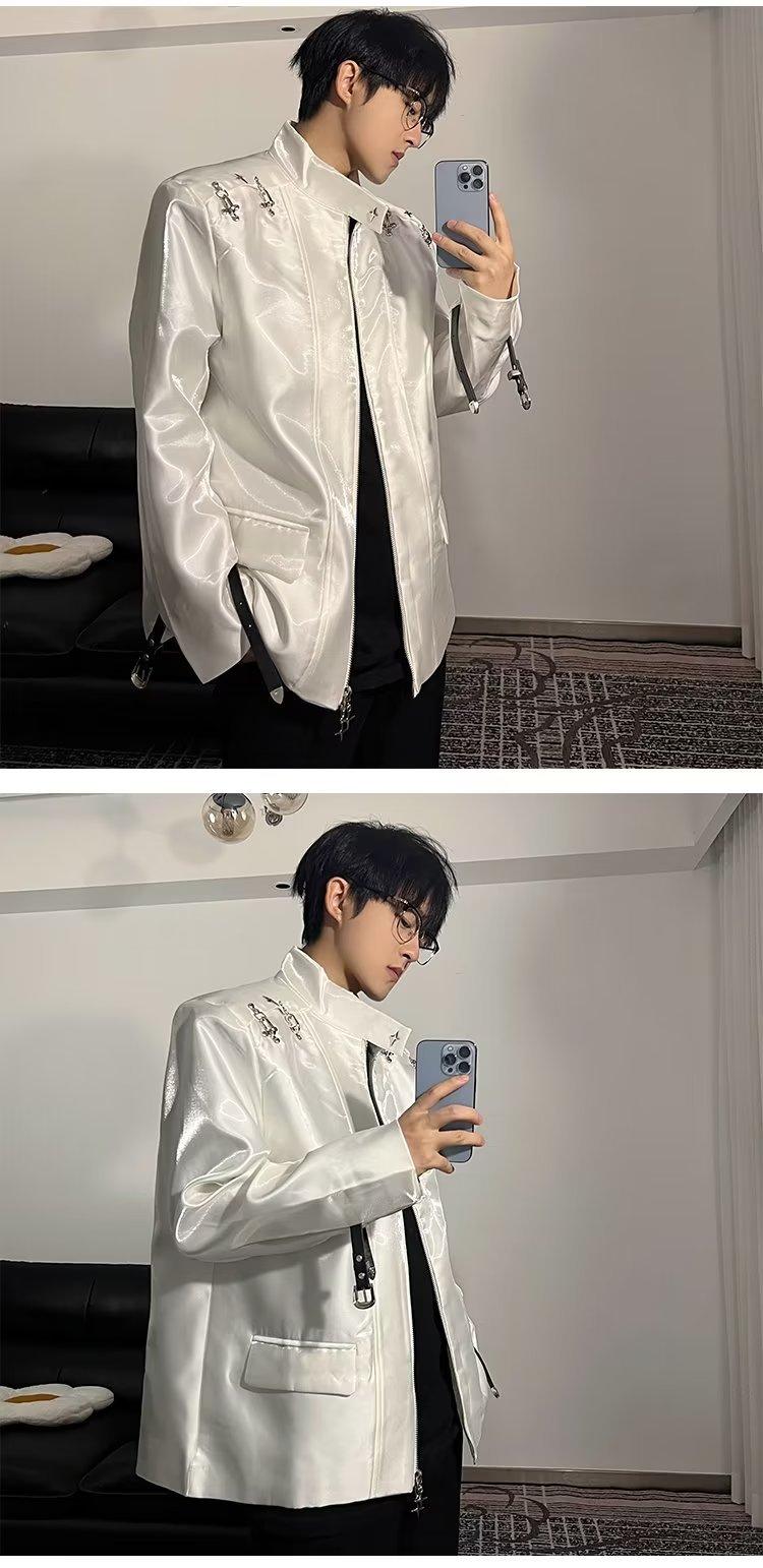 Ruoshuai preto gola alta ombreira jaqueta top design fivela de aeronave sentido casaco roupas de motociclista