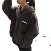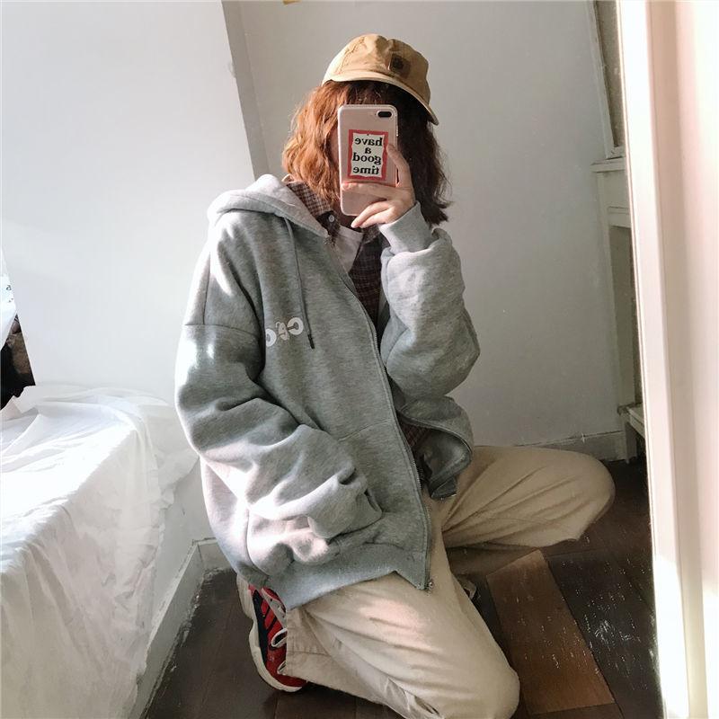 2025 Novo Outono e Inverno Roupa de Casal Estilo Coreano Cardigan com Zíper Estampado Moletom de Veludo com Capuz Jaqueta Solta Feminina para Estudantes
