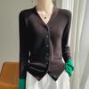 Primavera e Outono 2024 Novas Tops assimétricos de manga comprida com decote em V para mulheres Camisas de malha com fundo de nicho Camisetas finas