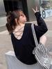 Camiseta de Manga Comprida para Mulheres Início do Outono 2025 Novo Design Nicho Fina Sem Costas Top Cruzado Camiseta Base Roupa Íntima