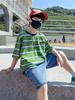 Conjunto de Verão Listrado de Manga Curta para Meninos 2024 Moda Infantil Estilo Ocidental Fino Conjunto de Duas Peças de Verão para Meninos