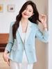 Jaqueta de terno azul feminina primavera e outono 2025 novo design senso nicho elegante casual high-end senso pequeno terno top