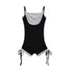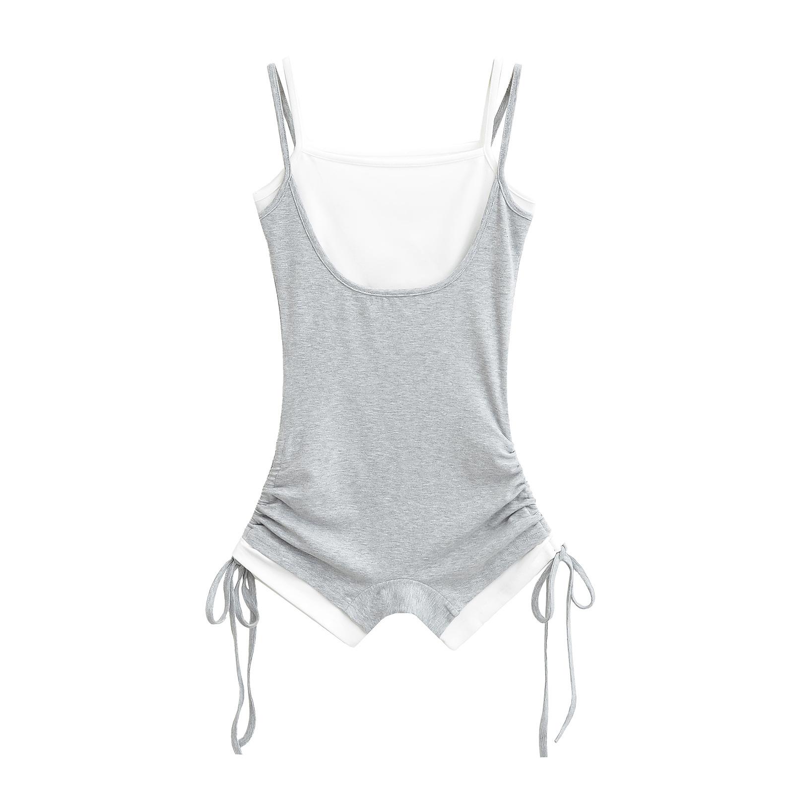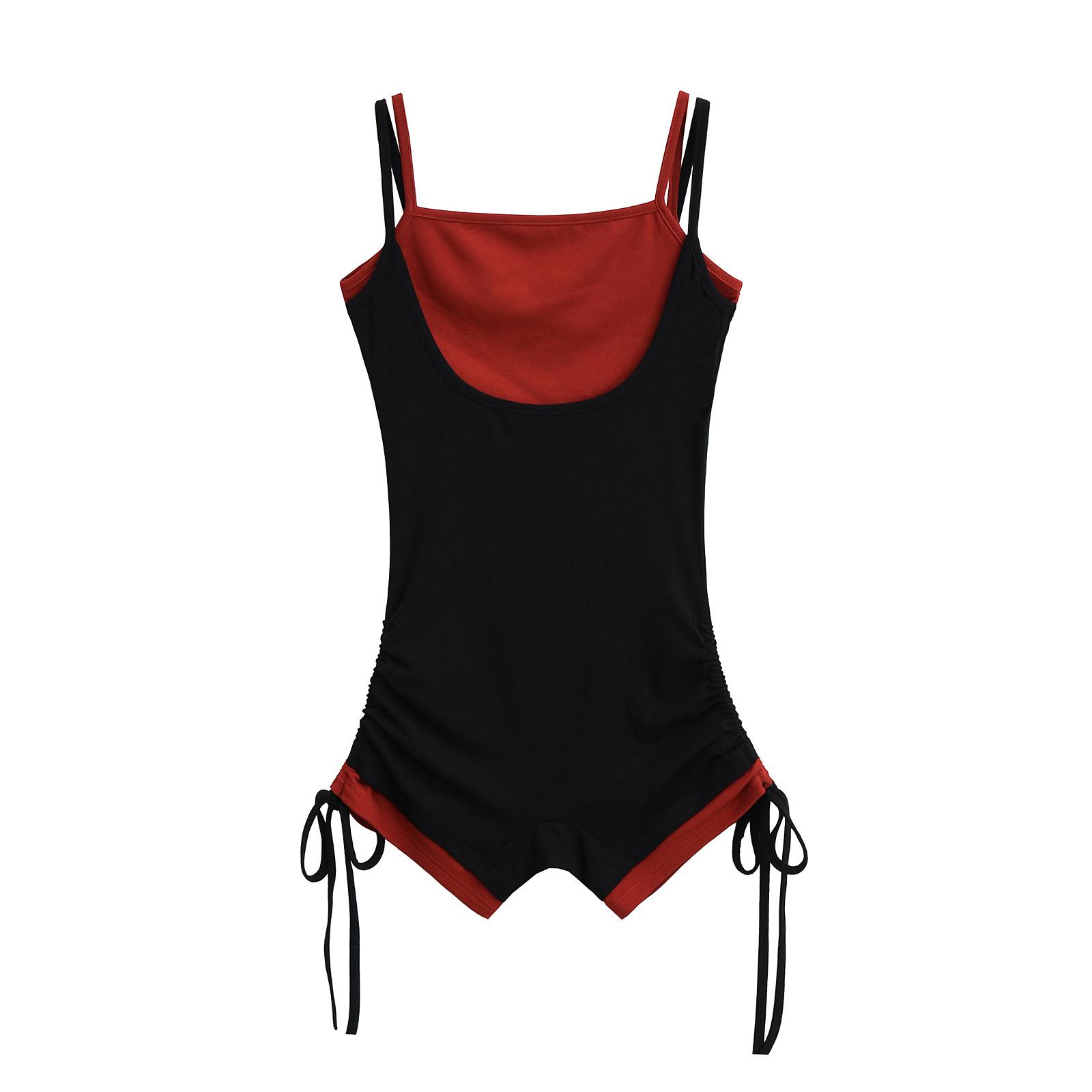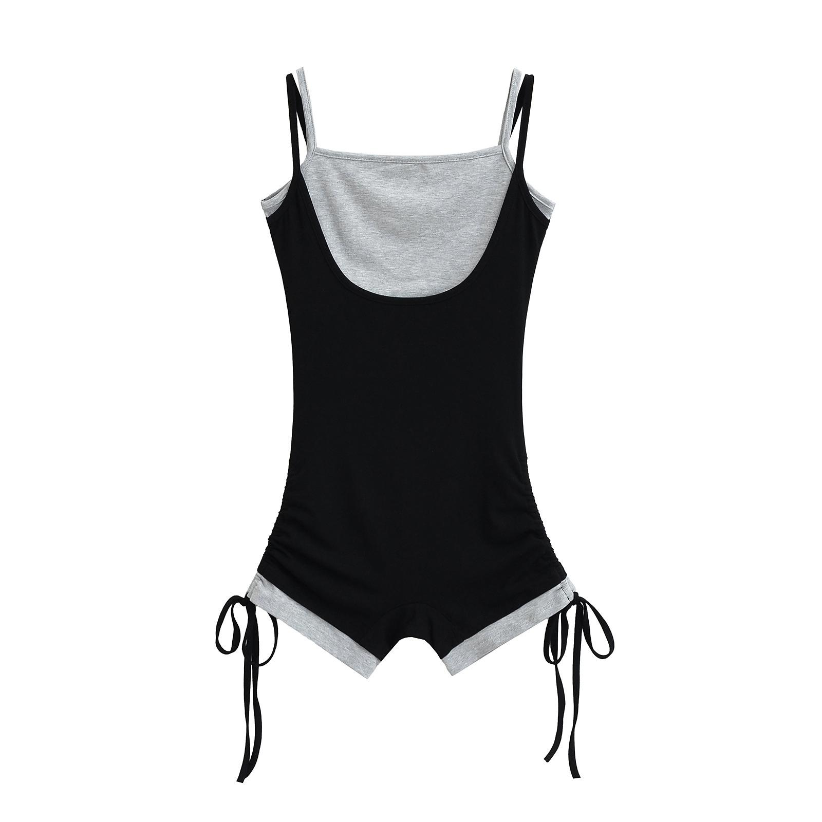 Verão apertado falso duas peças cor contraste sling macacão feminino spice girl casual calças design senso cintura alta macacão shorts