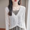 Cardigan de malha com proteção solar de seda gelada feminino, blusa solta e fina com xale, casaco e camisa com ar-condicionado, verão 2025