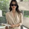 Outono e inverno feminino manga longa solto decote em V cor suéter de manga comprida estilo europeu e americano cor sólida suéter de fundo feminino